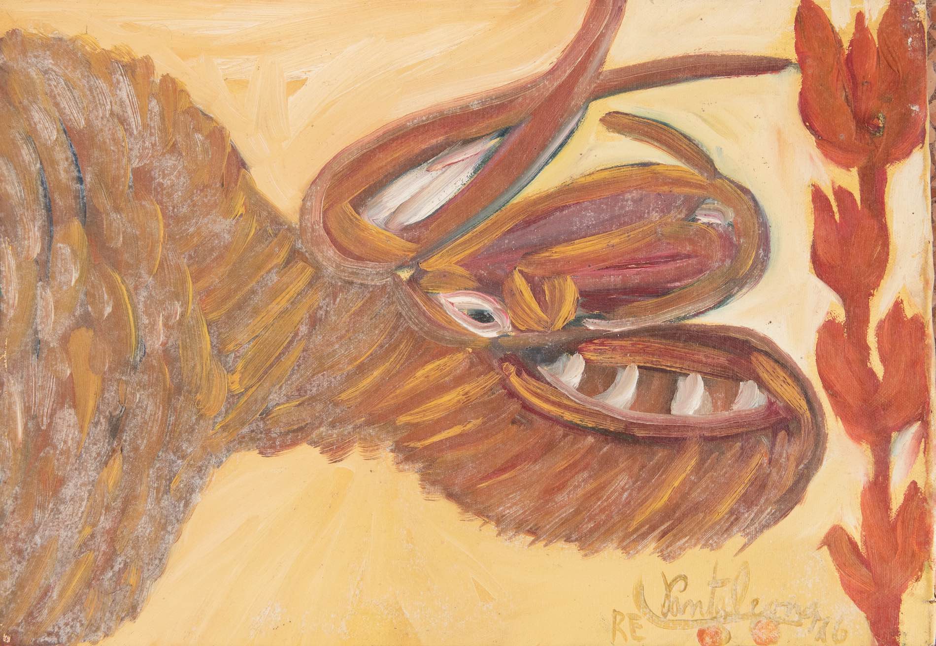 Ivo Spaggiari detto Pantaleone (1929 - 20015), “Testa ferina”, 1976. - Olio su tela, firmato e datato in basso a destra Pantaleone RE 76, H cm 35x50 Provenienza: Collezione Bolondi - Luzzara.