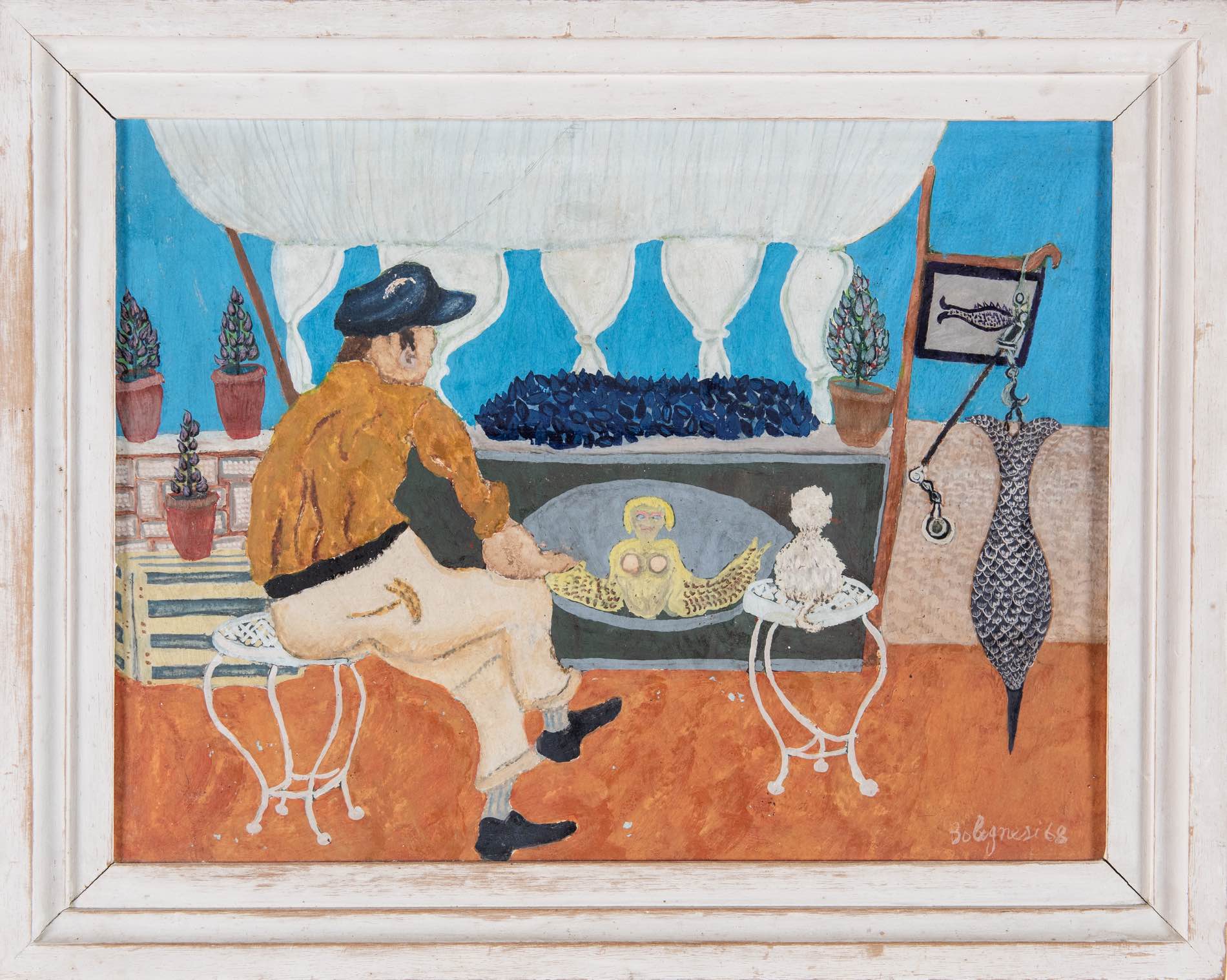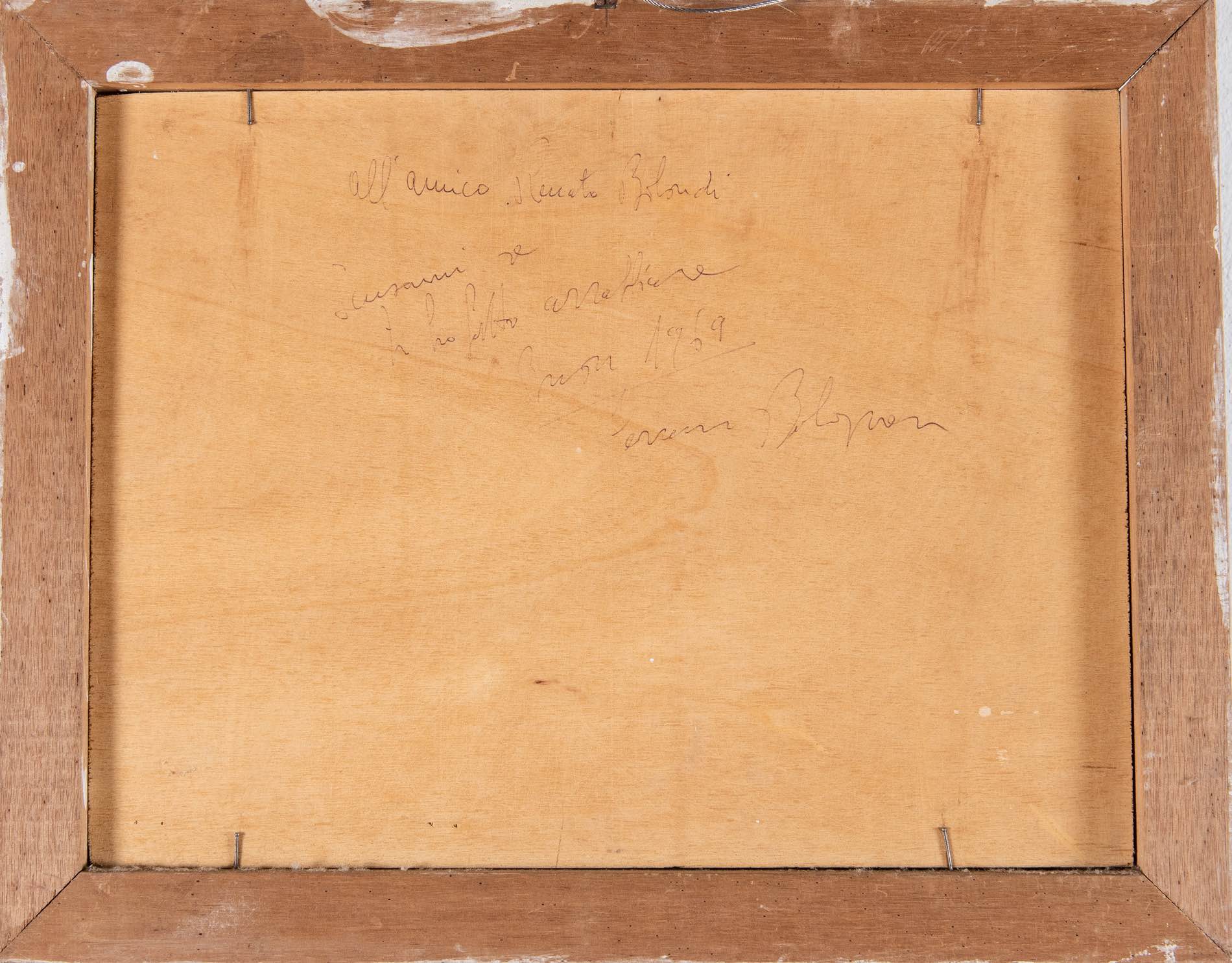 Ferruccio Bolognesi (Mantova 1924 - 2002), “Pescatore”, 1968. - Olio su tavoletta, firmato e datato in basso a destra Bolognesi 68, H cm 29x30 Al retro dedica a Renato Bolondi. Provenienza: Collezione Bolondi - Luzzara.