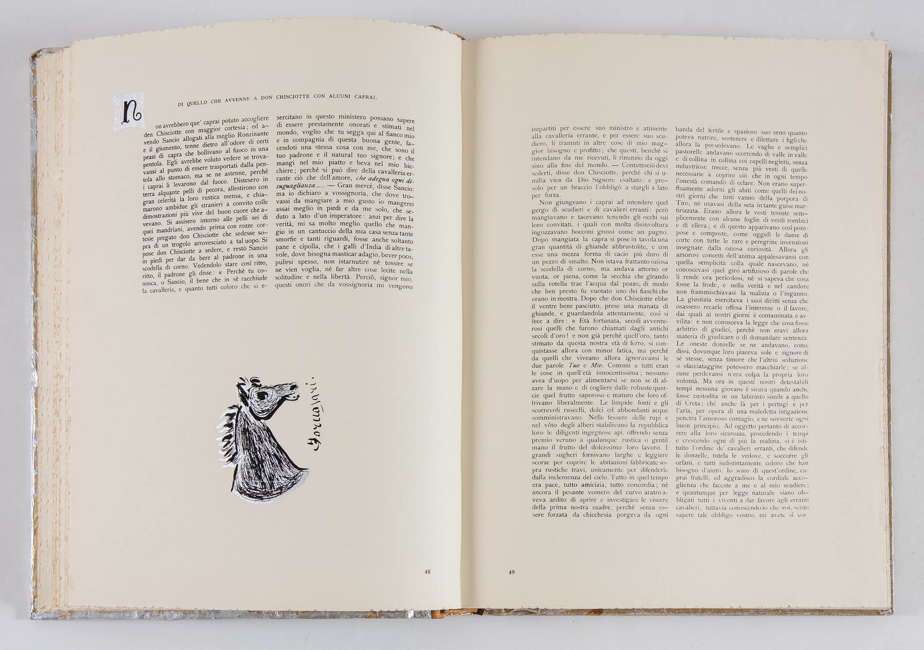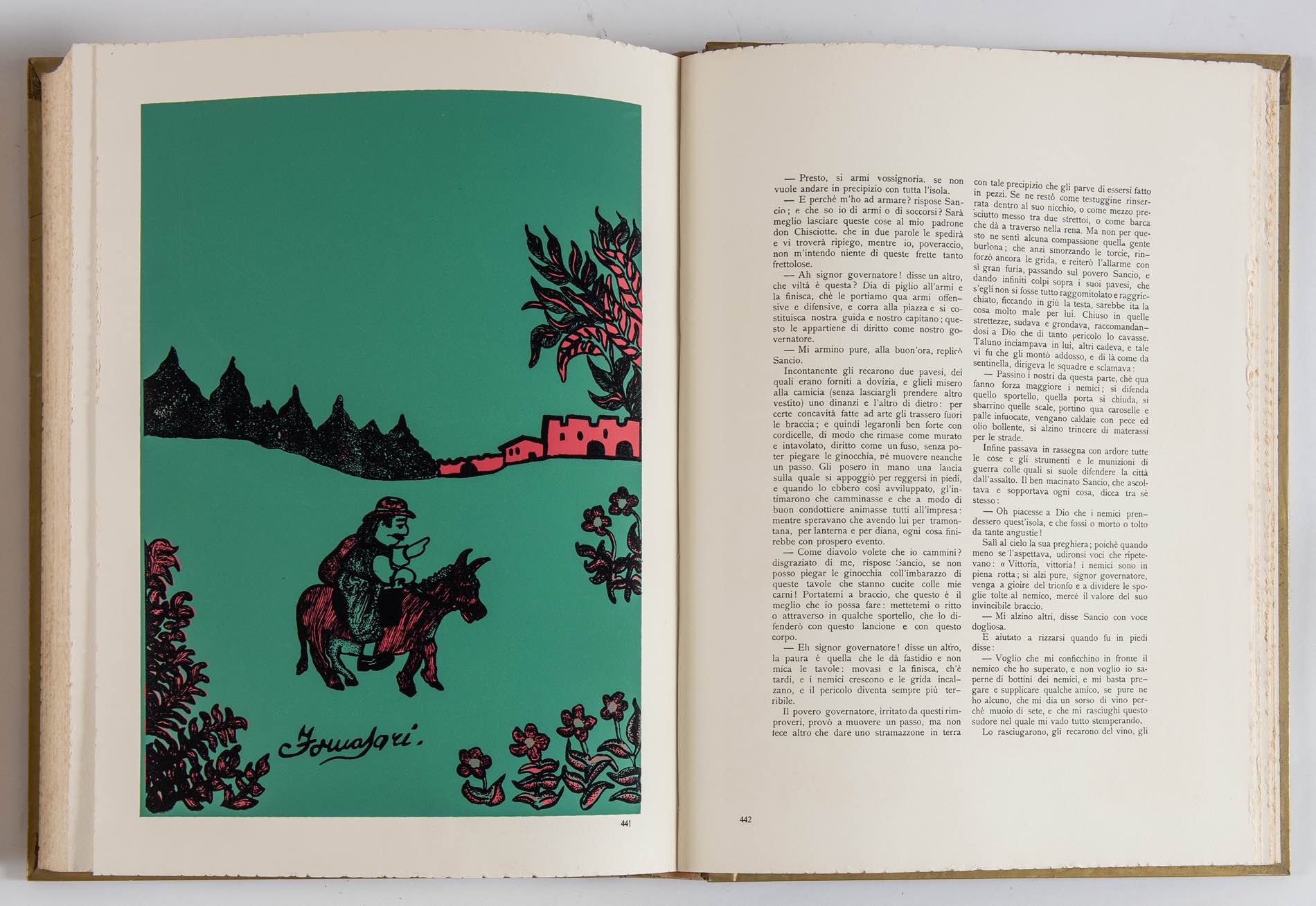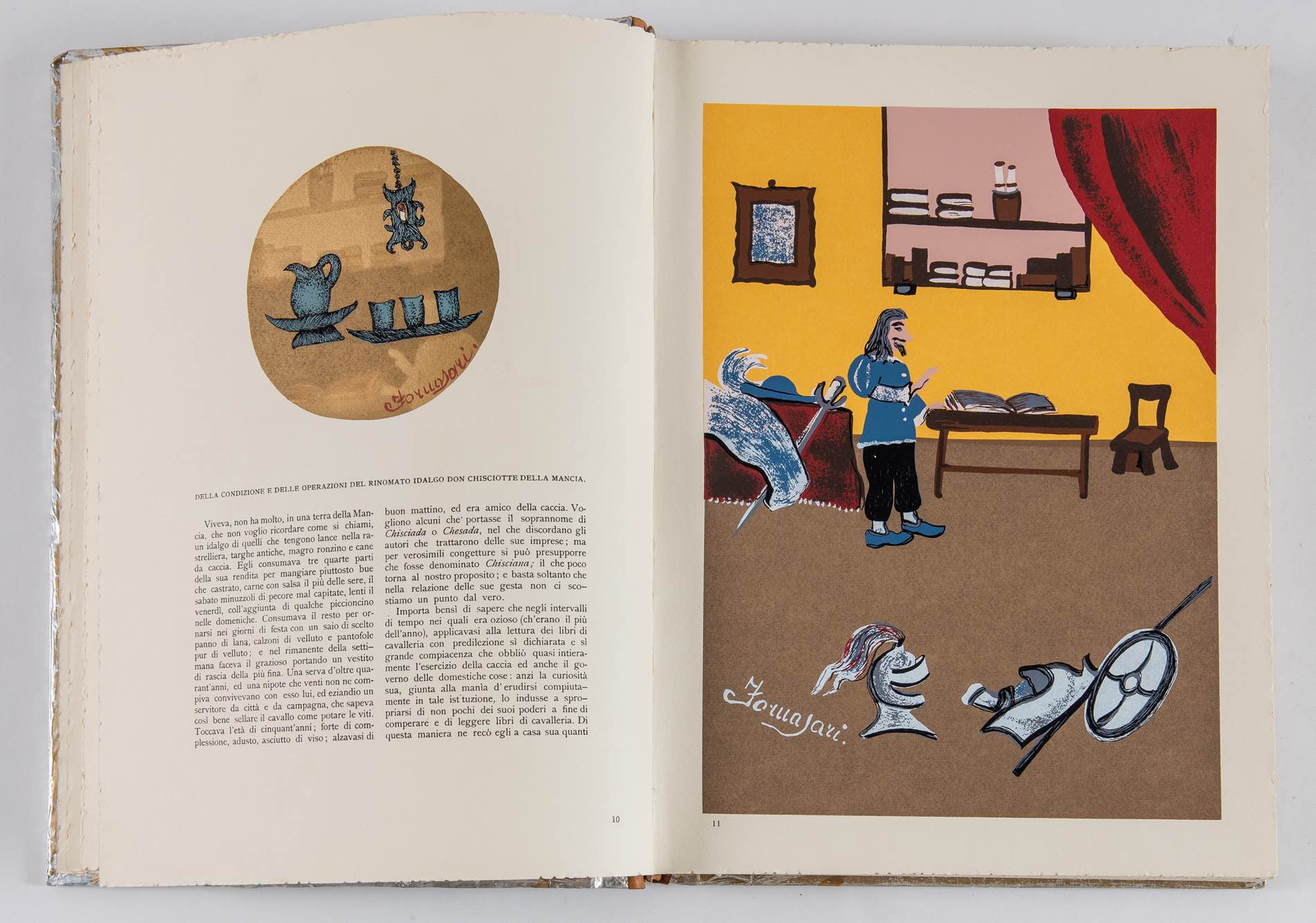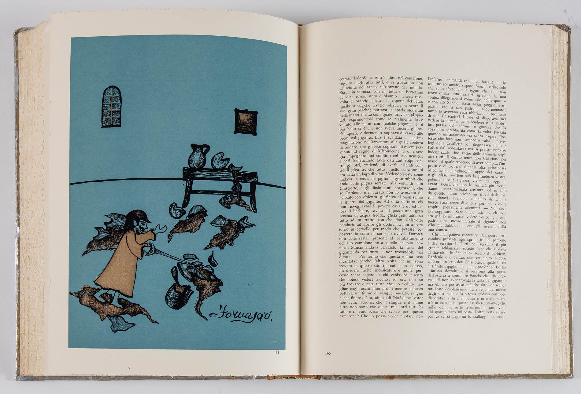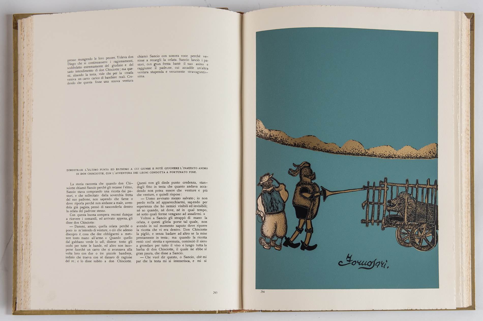 Natale Fornasari (XX secolo), “Don Chisciotte Naif”, 1975. - Opera in due volumi illustrati da Natale Fornasari, con presentazione di Dino Villani e Nevio Jori, a cura di Marcel Janò, Edizioni, LE Connaisseur du Livre edizioni d’arte di Giannone Editore, Milano, copertine in alluminio dorate e sbalzate da lastra di bronzo, esemplare 661, H cm 42x32 Provenienza: Collezione Bolondi - Luzzara.