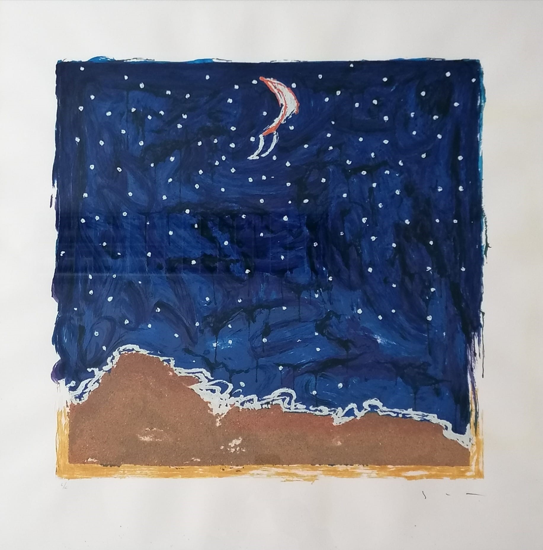 serigrafia materica a smalto e sabbia, stampa a 30 colori su carta cm 80x80