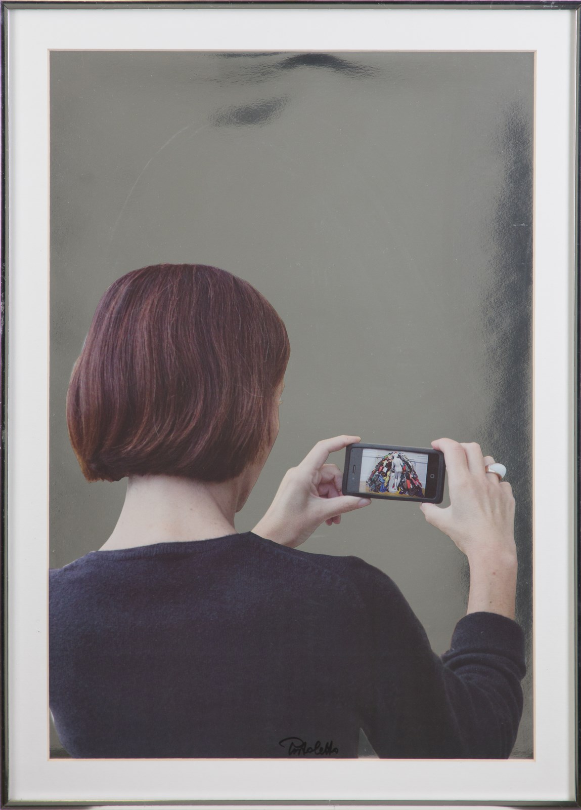 PISTOLETTO MICHELANGELO (n. 1933) Senza titolo. Serigrafia su carta argentata. Cm 44,00 x 66,00. Firma a pennarello in basso. Cornice presente