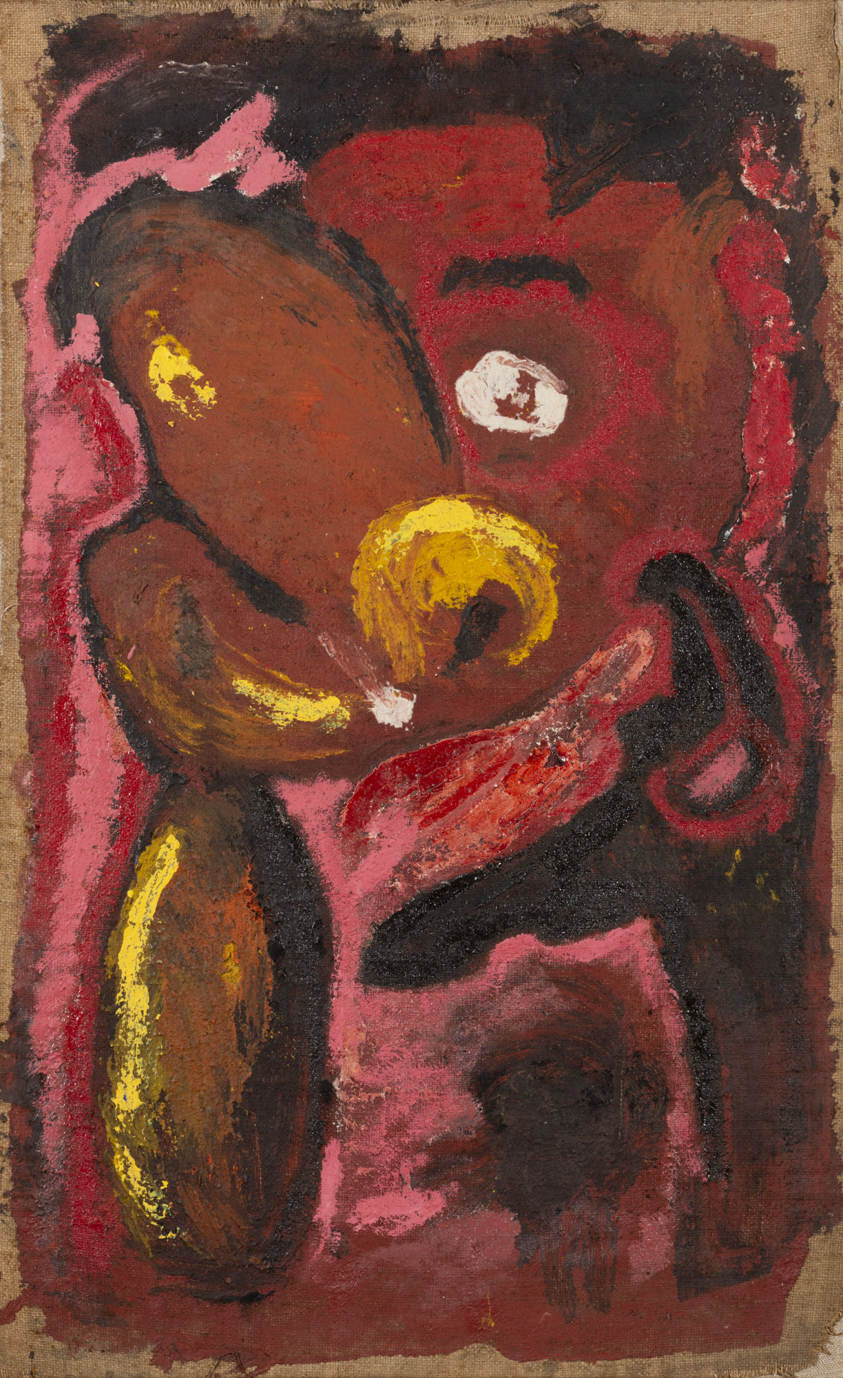 Tecnica mista su tela di juta, cm. 104,5 x 65