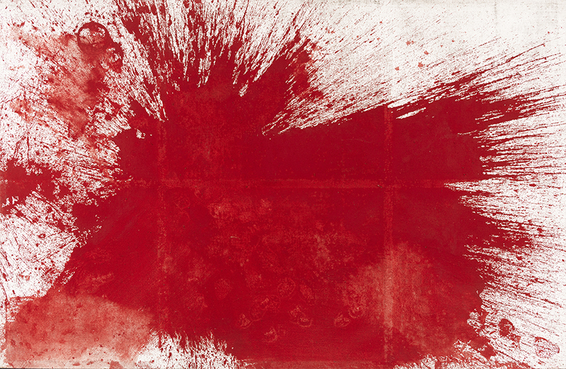 “Hermann Nitsch - La pittura dell’Orgien Misterien Theater”, Edizioni Franz Paludetto, Torino, 1984, n. 5/5 (opera pubblicata con il verso sbagliato)