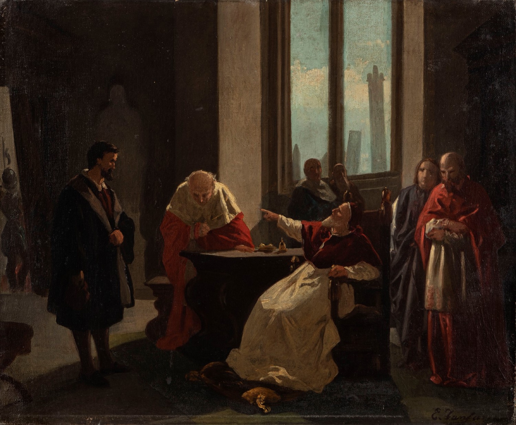Enrico Fanfani (Firenze 1824-1897) - Michelangelo e Giulio II a Bologna, About 1870-75
