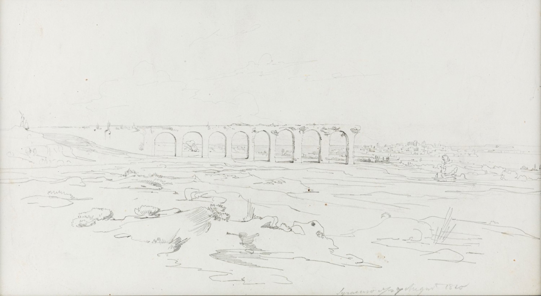 Johann Jakob Frey (Basilea 1813-Frascati 1865) - Coppia di disegni con paesaggi