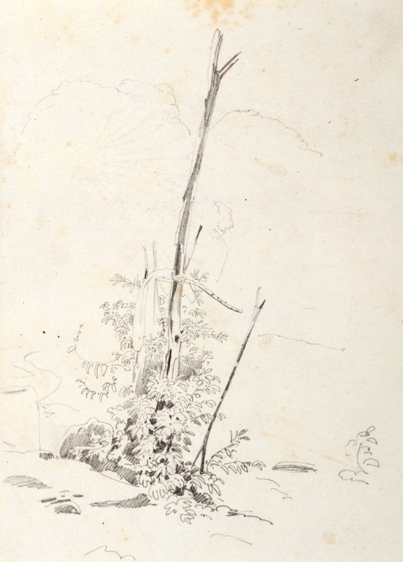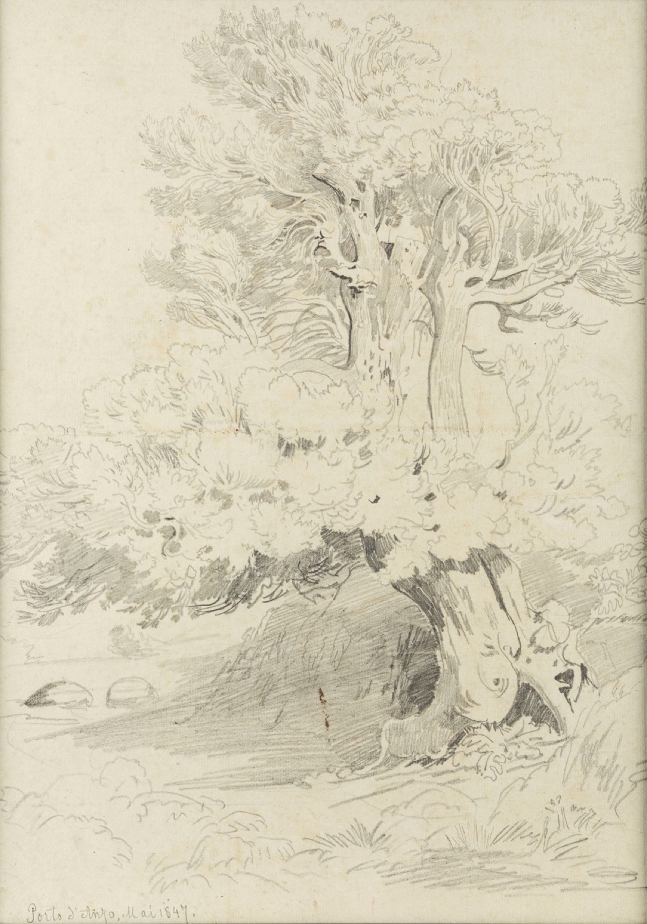 Johann Jakob Frey (Basilea 1813-Frascati 1865) - Coppia di disegni con Porto d'Anzio e studio d'albero