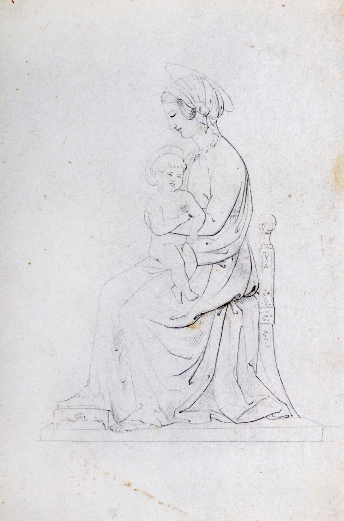 Johann Jakob Frey (Basilea 1813-Frascati 1865) - Coppia di disegni con falchetti e Madonna col Bambino