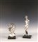 ENZO SCATRAGLI Italia XX Sec. due sculture in metallo argentato raffiguranti soggetti femminili, firmate, misure diverse