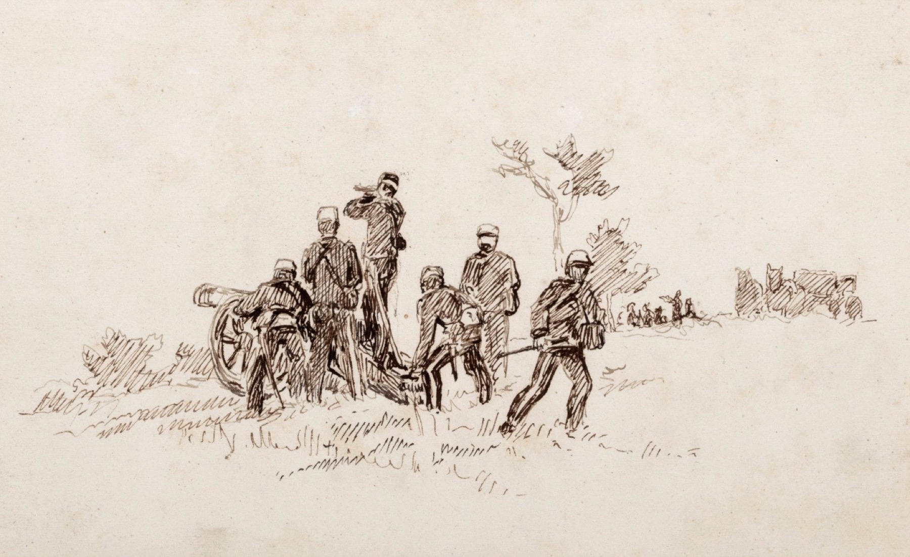 Sul retro, altro disegno con soldati e cannone.