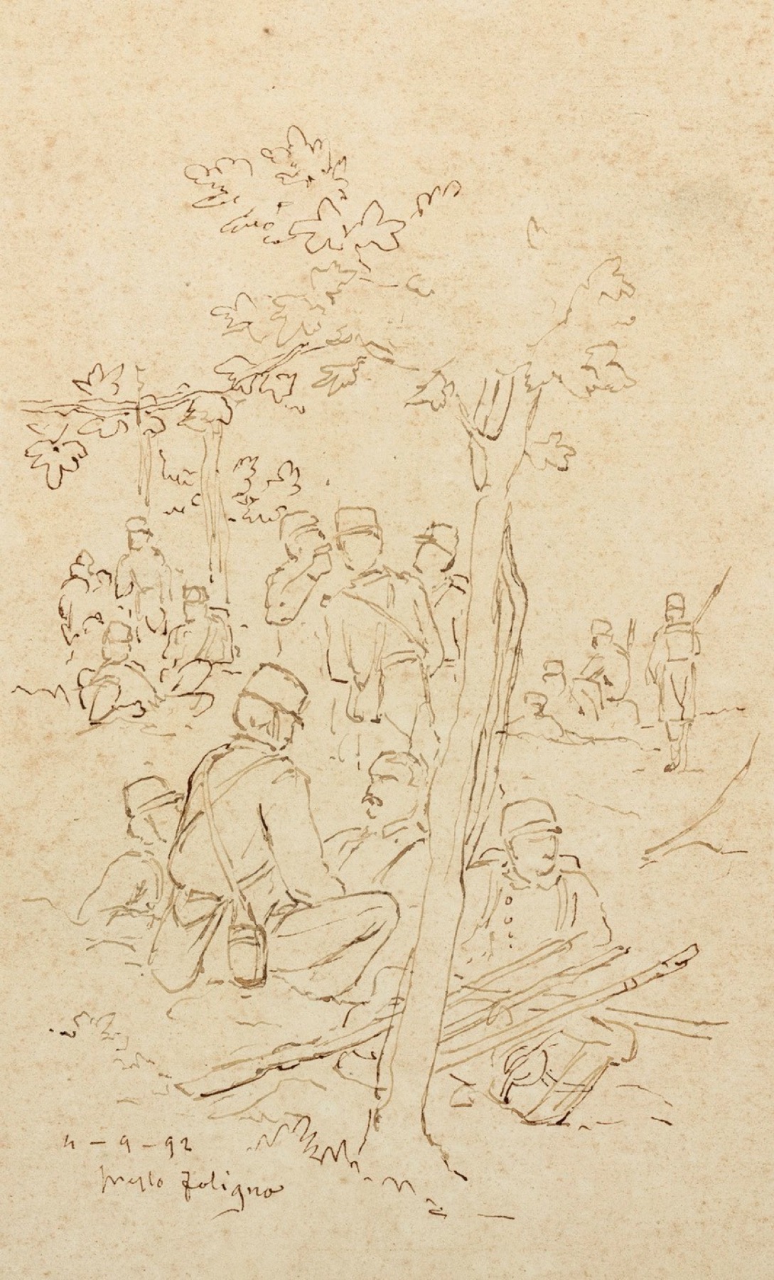 b) Sosta di soldati presso Foligno, 1892