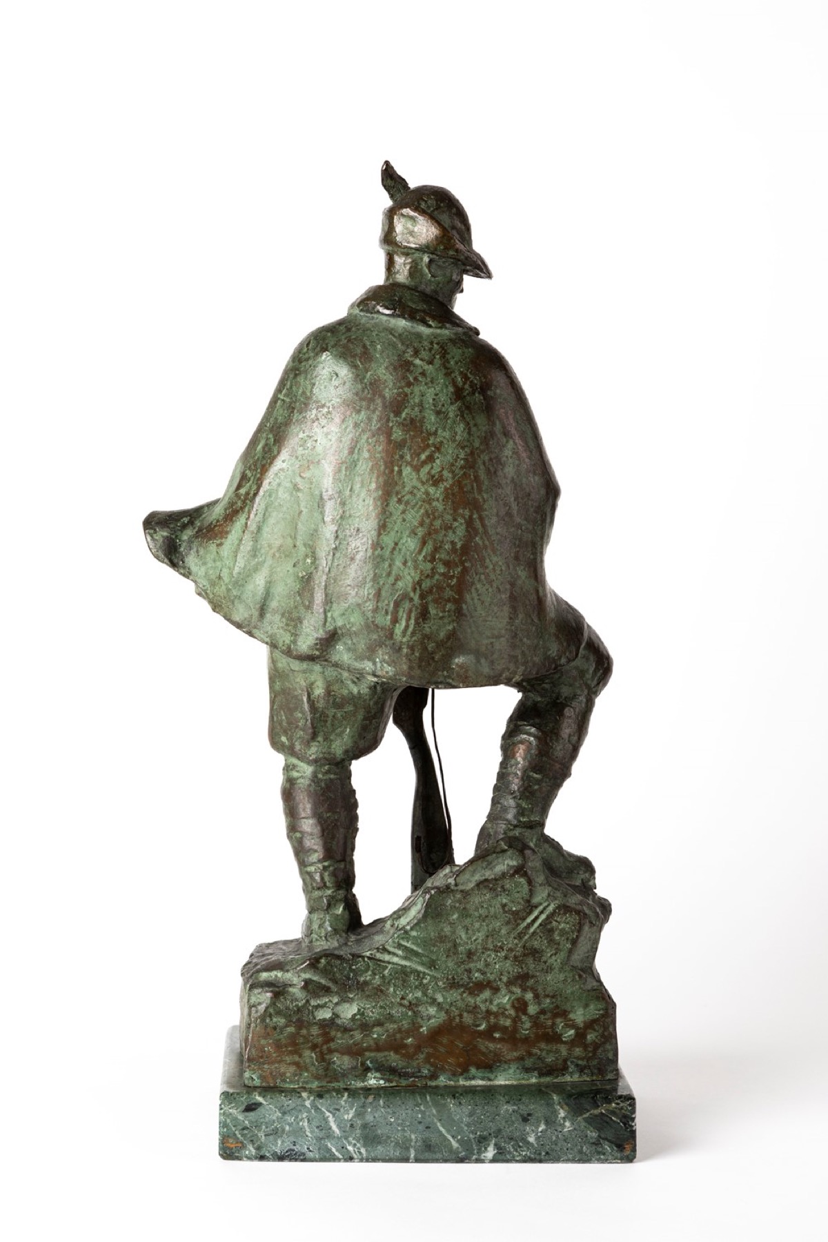 scultura in bronzo su base in marmo verde