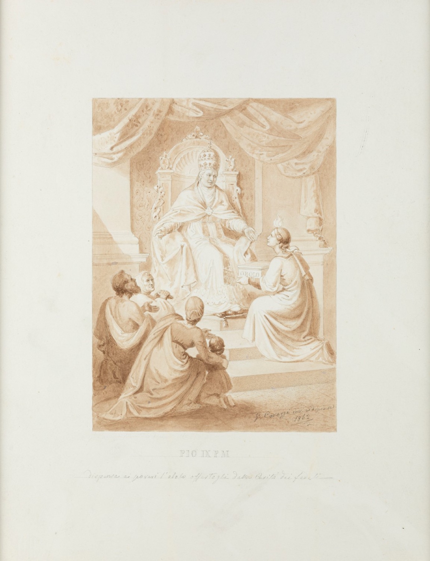 Scuola italiana del XIX secolo - Pio IX dispensa ai poveri l'obolo offertogli dalla Carità dei fedeli, 1862