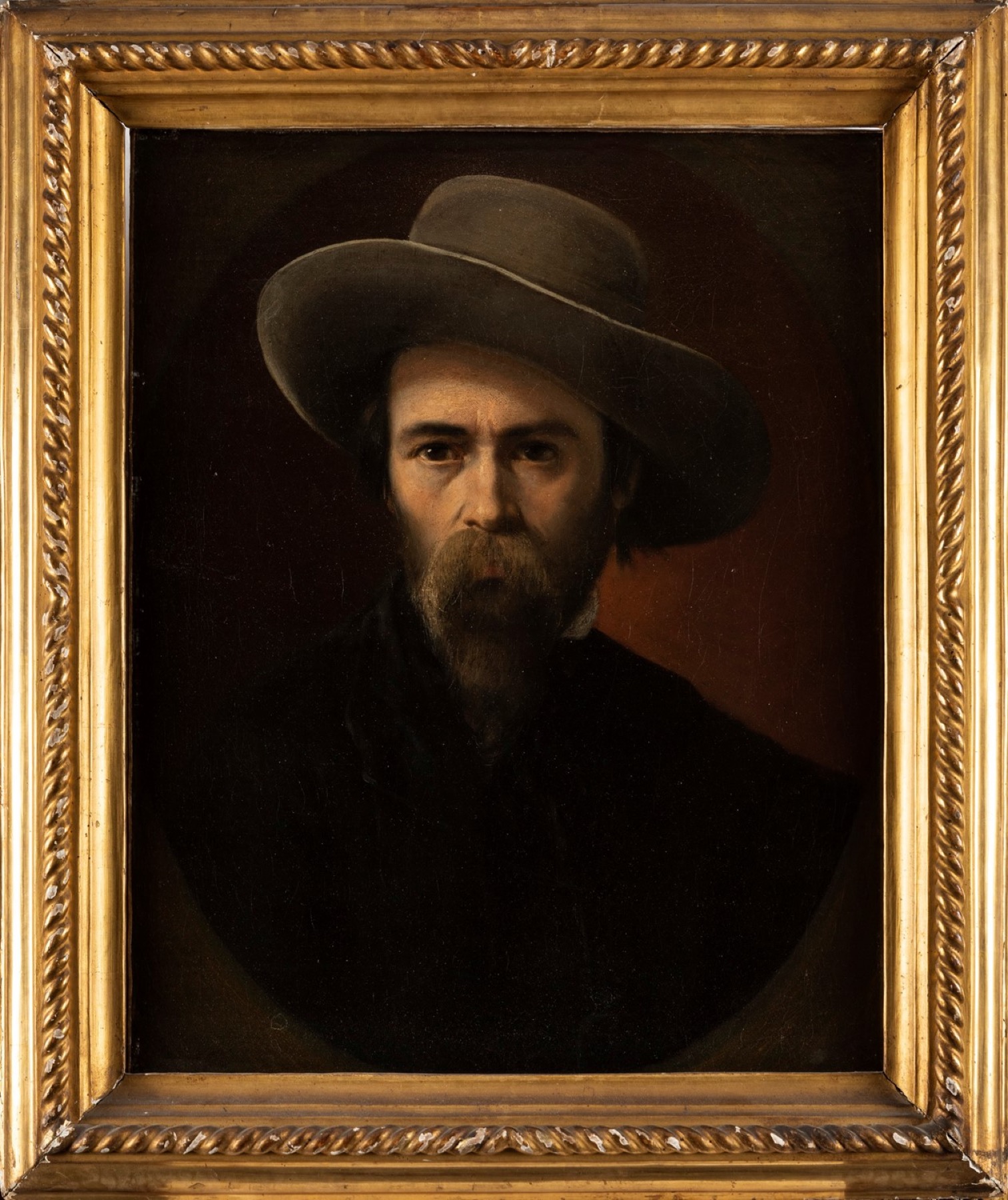 Scuola italiana del XIX secolo - Ritratto d'uomo con cappello