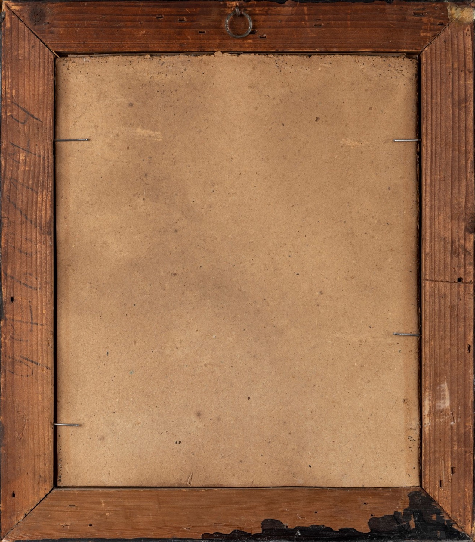 Sul retro, sul cartone di supporto, antico cartellino con nome e indirizzo del pittore, titolo dell'opera, numero di riferimento (37) e prezzo (2000).