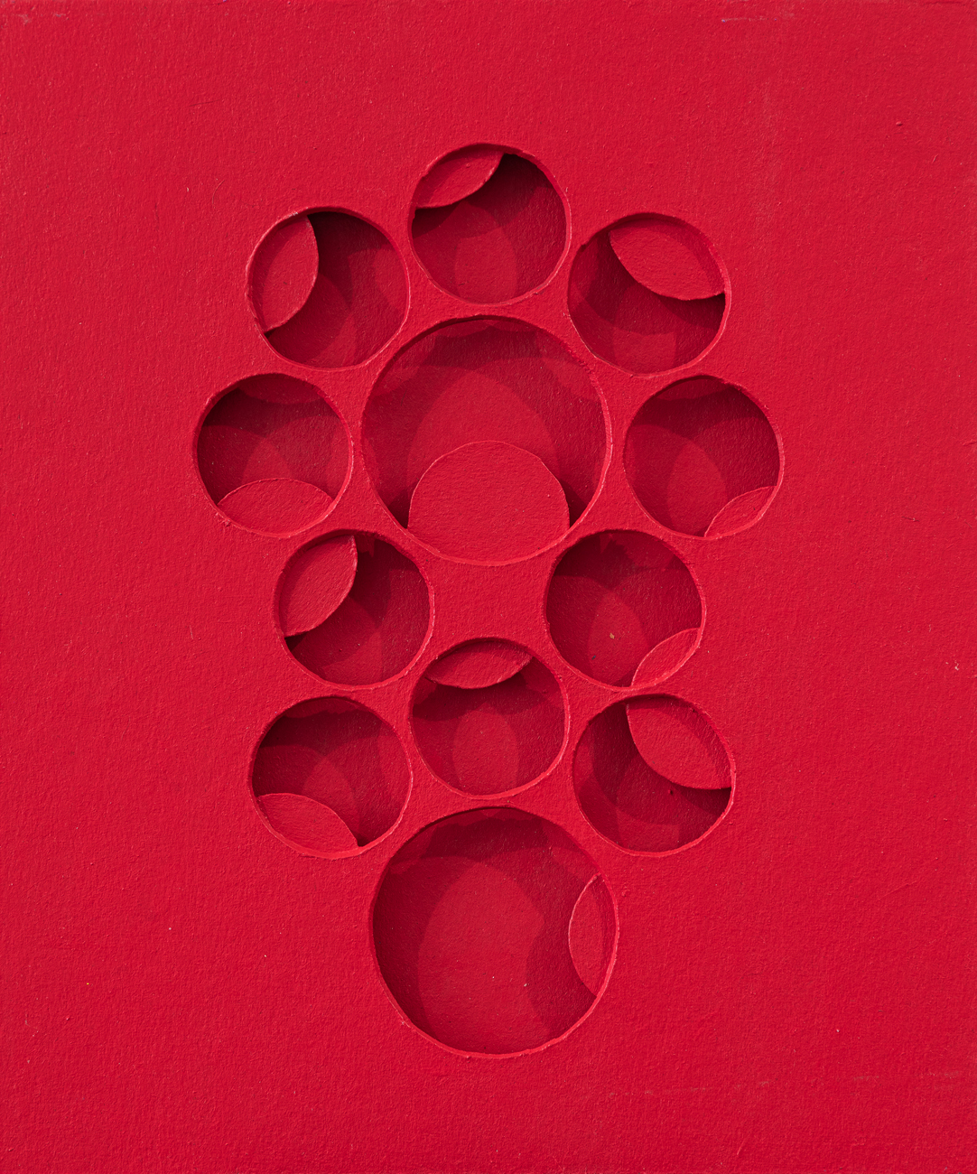 Acrilici su cartoncino e tre tavole intagliate a mano