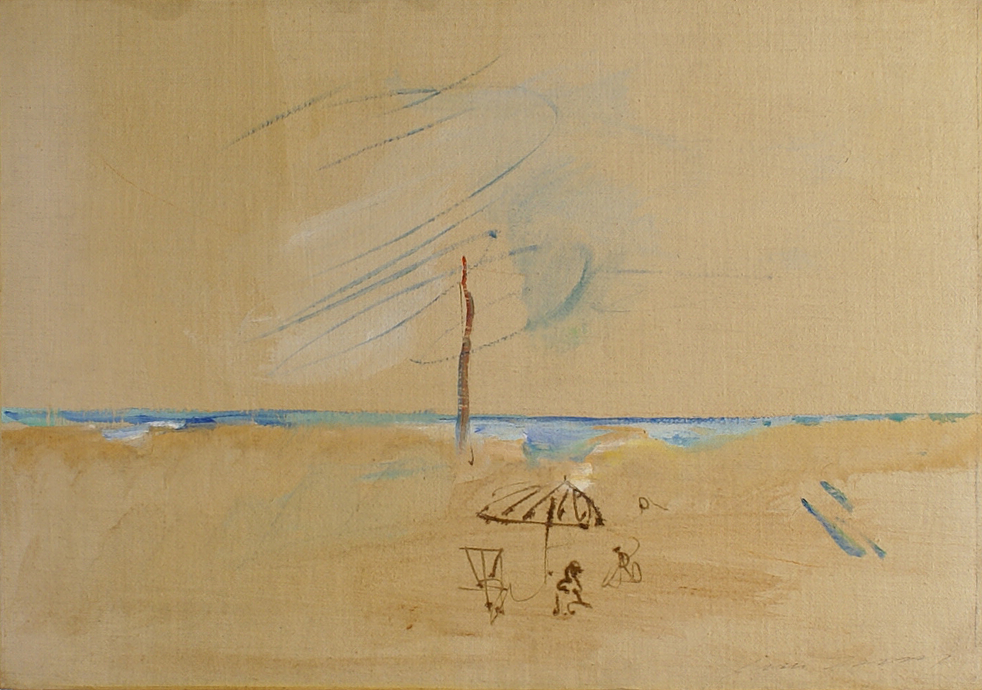 ERNESTO TRECCANI Milano 1920-2009 Spiaggia olio su tela, firmato in basso a destra, entro cornice, autentica dell'artista su foto 35x50 cm.
