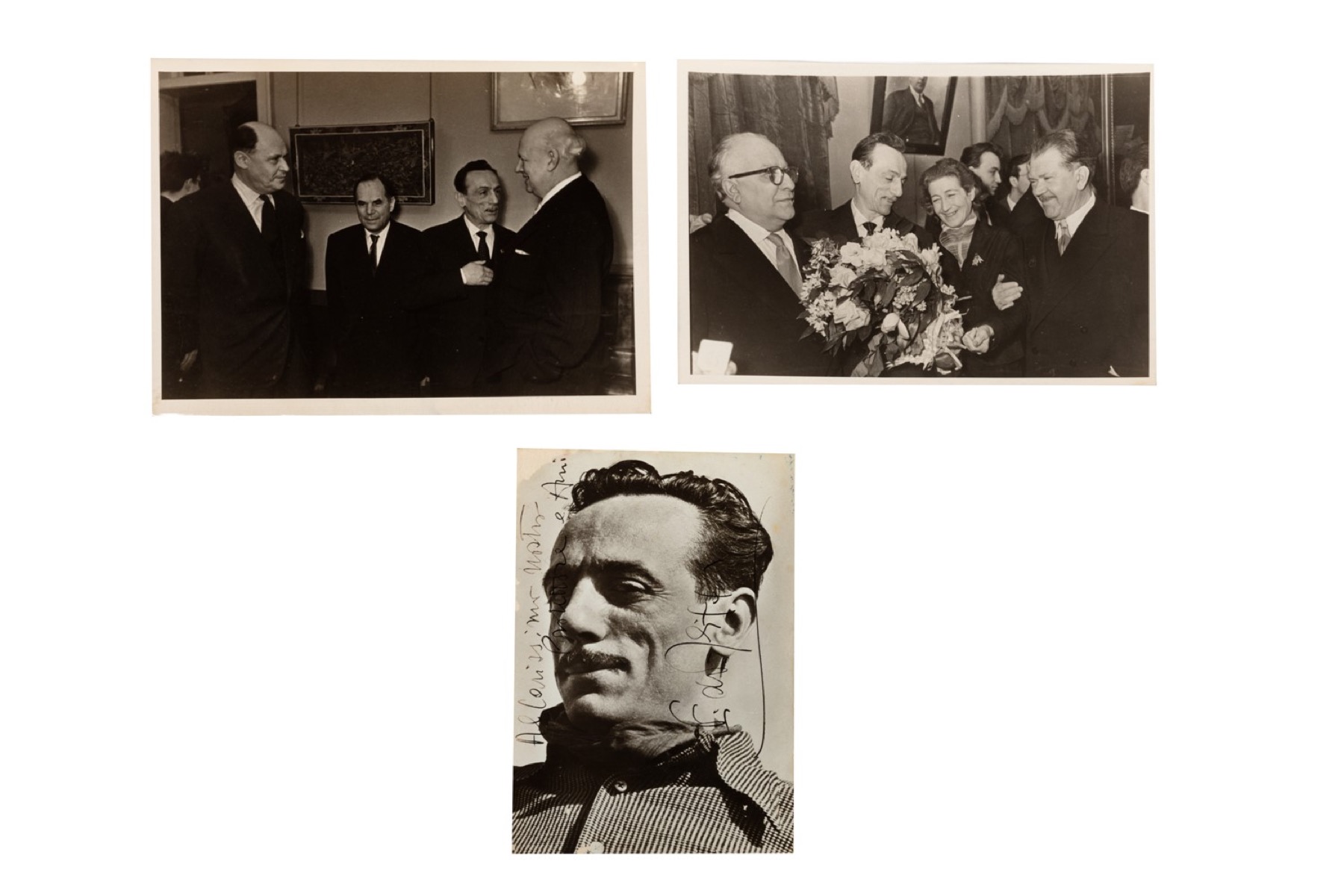 Bell'insieme di tre foto, due lo ritraggono in cerimonie pubbliche e premiazioni, 130 x 182 mm., una di sicuro antecedente con dedica "Al Carissimo nostro Protettore e Amico", lievi abrasioni al margine.
