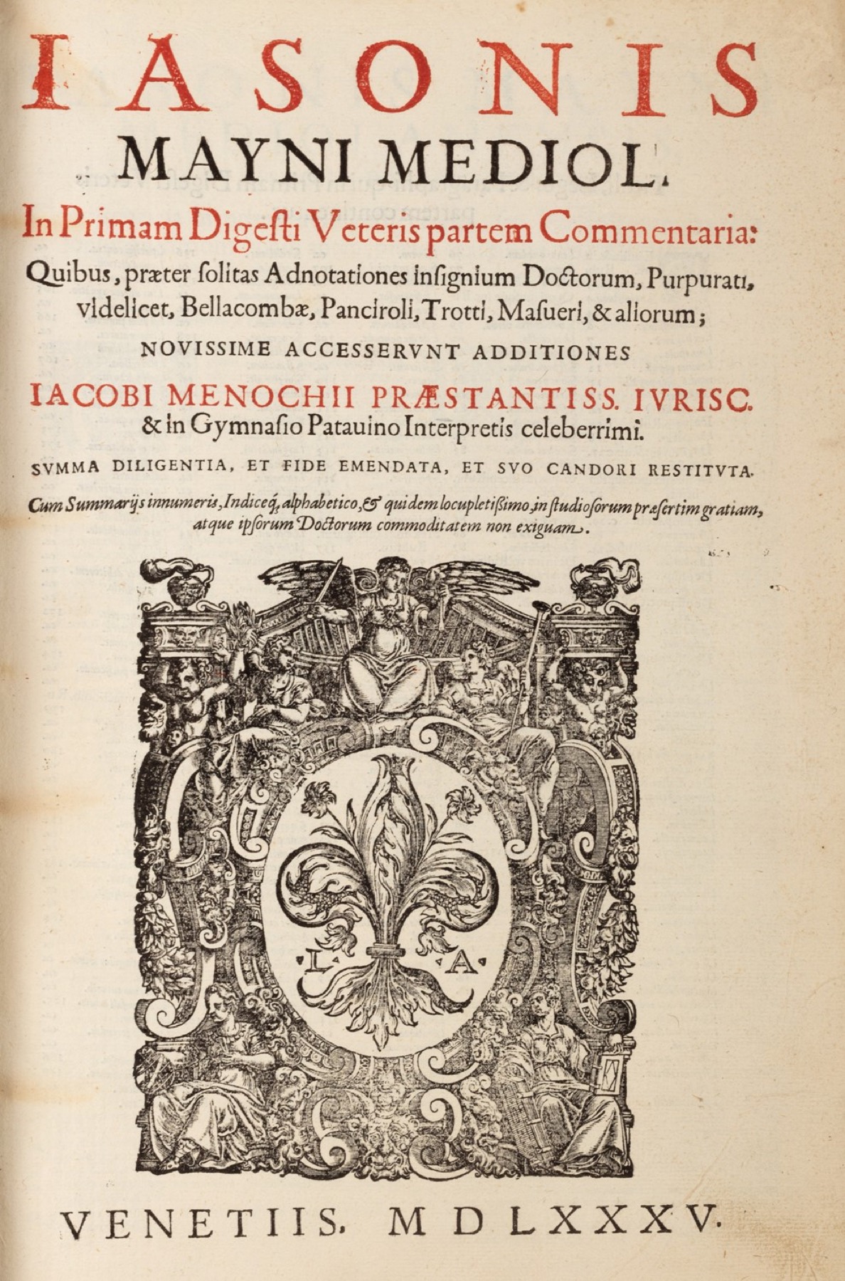 Lotto 89 | Giuridica / Maino, Giasone del - In primam [-secundam] Digesti Veteris partem Commentaria: Quibus, praeter solitas Adnotationes insignium Doctorum, Purpurati, videlicet, Bellacombae, Panciroli, Trotti