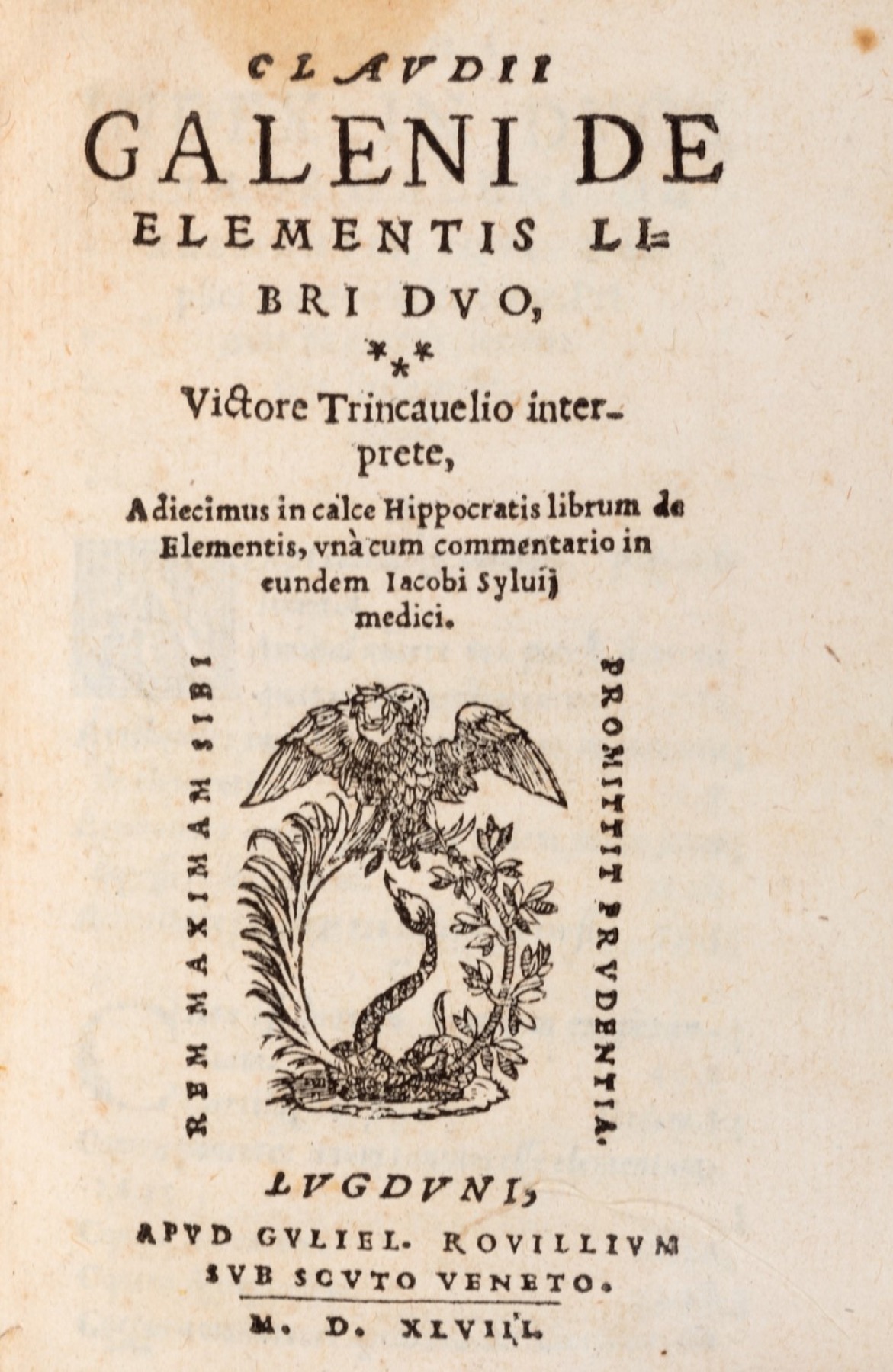Medicina / Galeno, Claudio - De temperamentis libri III. De inaequali intemperie liber vnus. Thoma Linacro Anglo interprete. Cum Isagoge in eosdem libros, & scholijs marginalibus longè doctissimis, per Iacobum Syluium