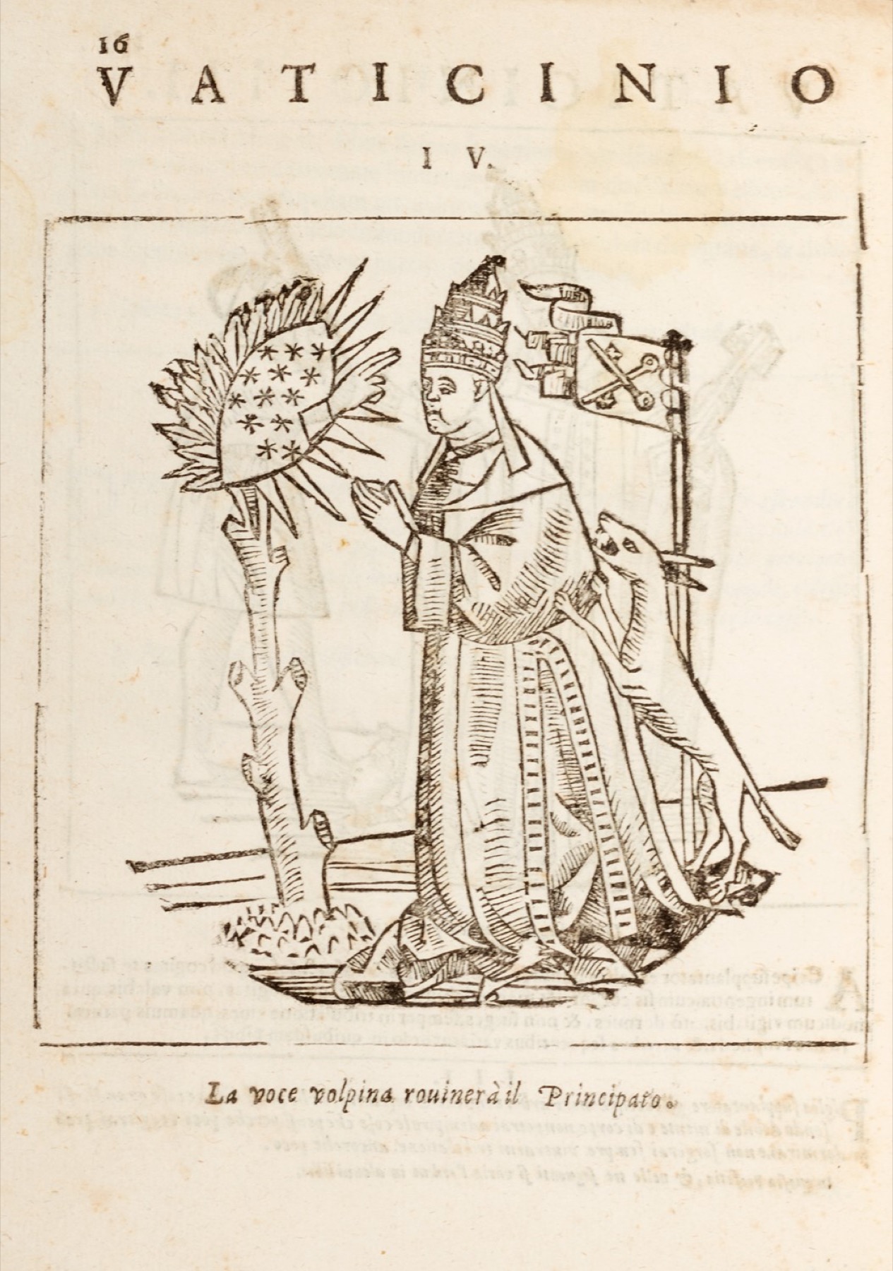 Rara edizione illustrata dei 'Vaticinia', raccolta di predizioni criptiche riguardanti il Papato ascritte tradizionalmente al teologo mistico del XII Secolo Gioacchino da Fiore.