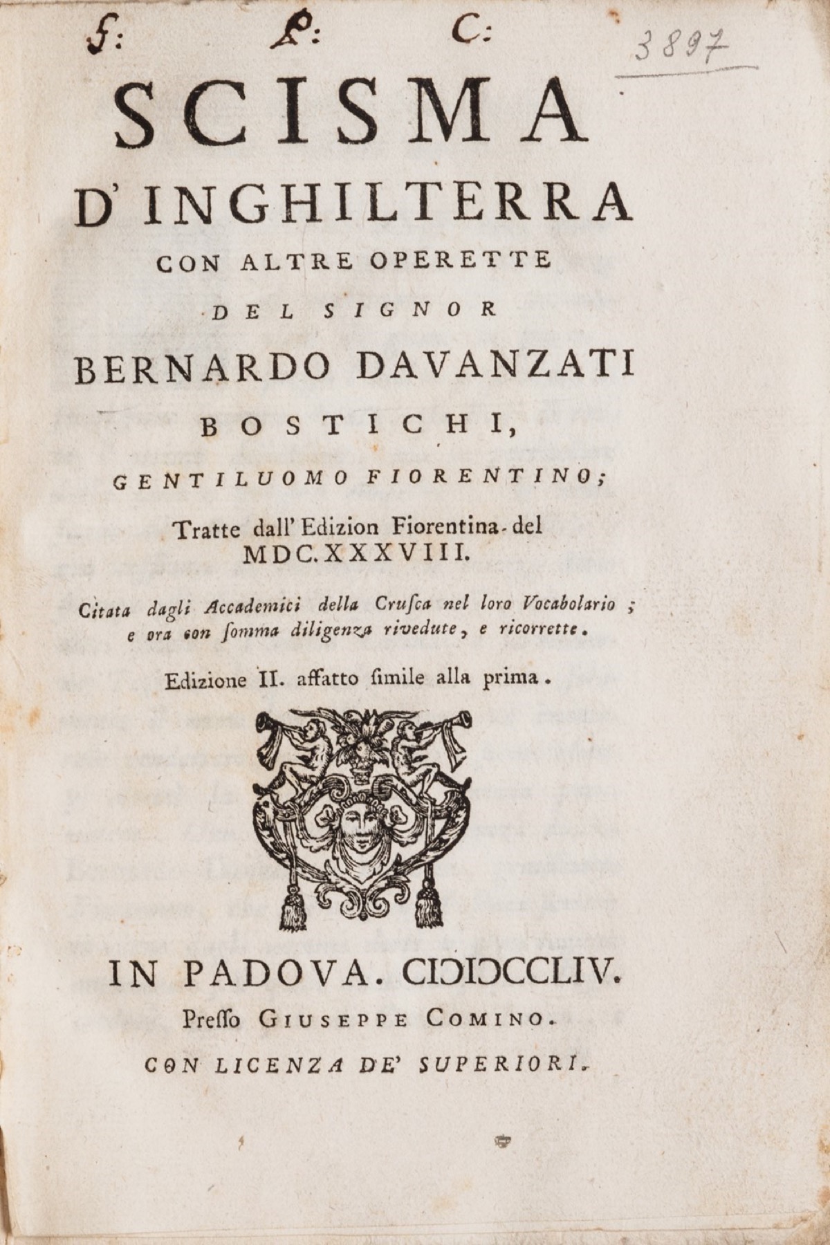 Davanzati, Bernardo - Scisma d'Inghilterra con altre operette