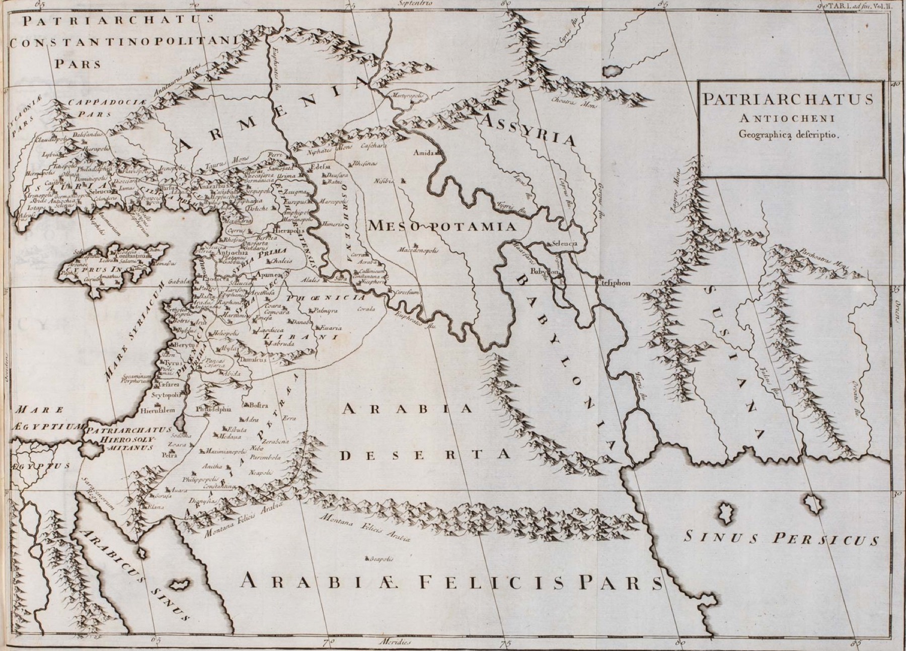 Cambridge, C. Crownfield, 1720. In 2°. Solo la seconda parte. Al frontespizio elegante vignetta incisa in rame, testo disposto su 2 colonne con testo parallelo in greco ed in latino, con 3 carte geografiche incise in rame più volte ripiegate, qualche fascicolo con brunitura non accentuata, qualche macchia, legatura coeva in vitello marrone di diversa tonalità, ai piatti cornici con al centro fregio impresso in oro con tre pesci, dorso a 6 nervi, difetti. Ex libris nobiliari al contropiatto.