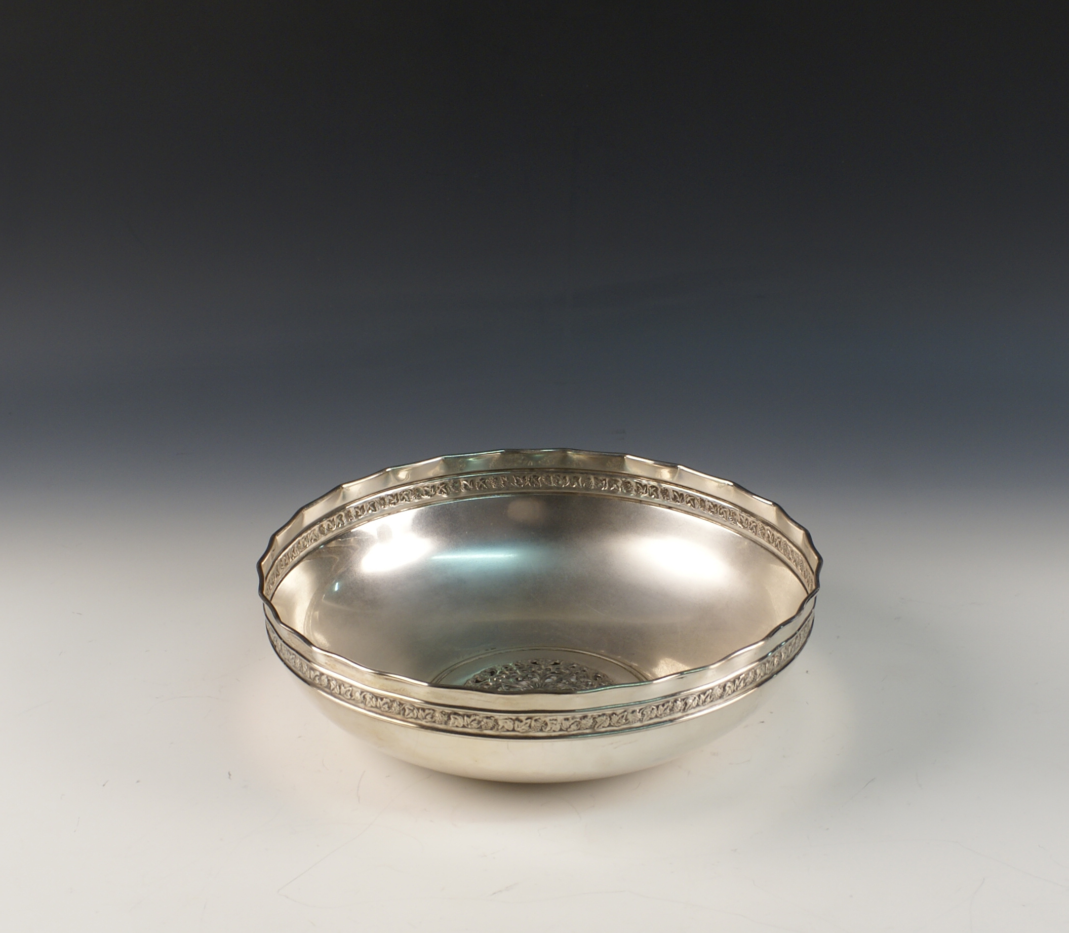 CENTROTAVOLA IN ARGENTO manifattura italiana traforato al centro con profilo sbalzato, d. cm. 28 490 gr.