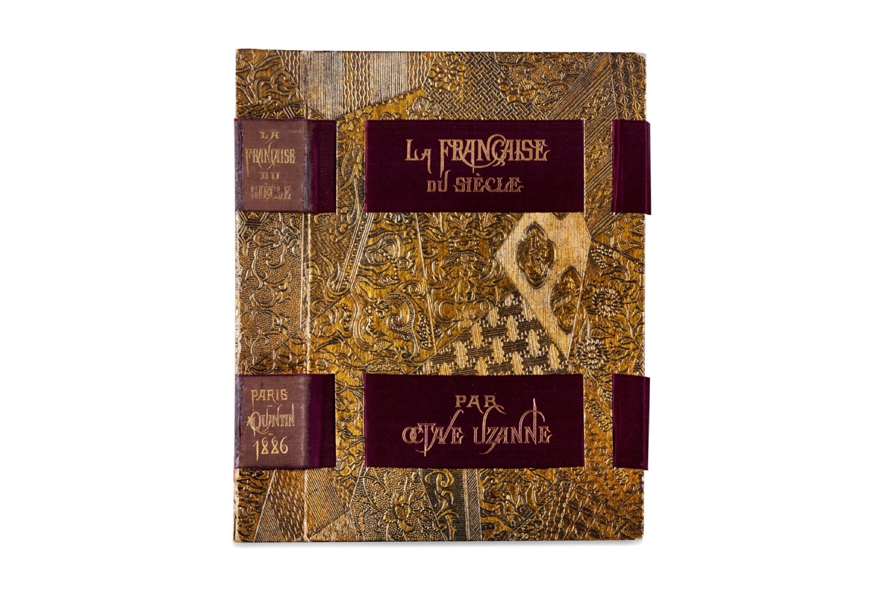 Parigi, A.Quantin 1886. In 4° piccolo. Occhietto e frontespizio in rosso e nero e con vignetta incisa, con incisioni in nero intercalate nel testo e 20 acquarelli di Alber Lynch incisi a colori all'acquaforte da Eugène Gaujean, di cui 10 su vignette ad inizio capitolo e 10 su e 10 tavole fuori testo firmate in lastra, inclusa l'antiporta, brossura editoriale illustrata a colori, doppia camicia, una in cartonato dorato completamente decorato con motivi a rilievo geometrici, floreali, stelle, ai piatti degli inserti in raso bordeaux, all'anteriore con titolo ed autore impressi in oro, l'altra in mezzo marocchino marrone, custodia in cartonato marmorizzato, lievi difetti.
