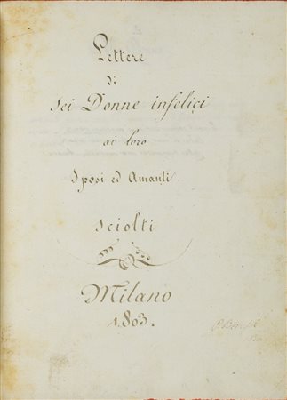 Trascrizione dell'opera di Ceroni, probabilmente ad opera di P. Benussi, il cui nome è annotato sul frontespizio con la data 1824. "Lettere di sei donne infelici ai loro sposi ed amanti sciolti" fu stampato a Milano nel 1803 da Agnello Nobile.