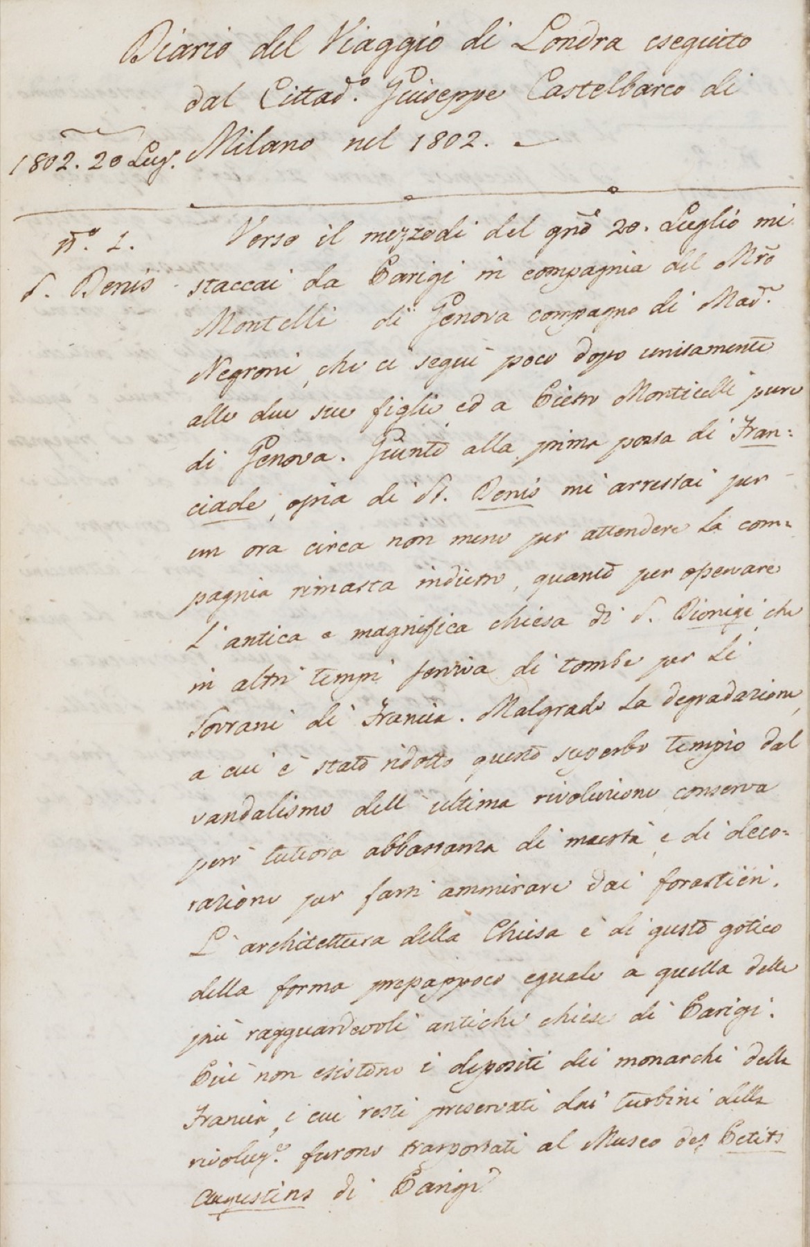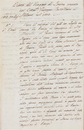 Manoscritto - Viaggi - Diario del viaggio di Londra eseguito dal Cittadino Giuseppe Scipione Castelbarco di Milano nel 1802