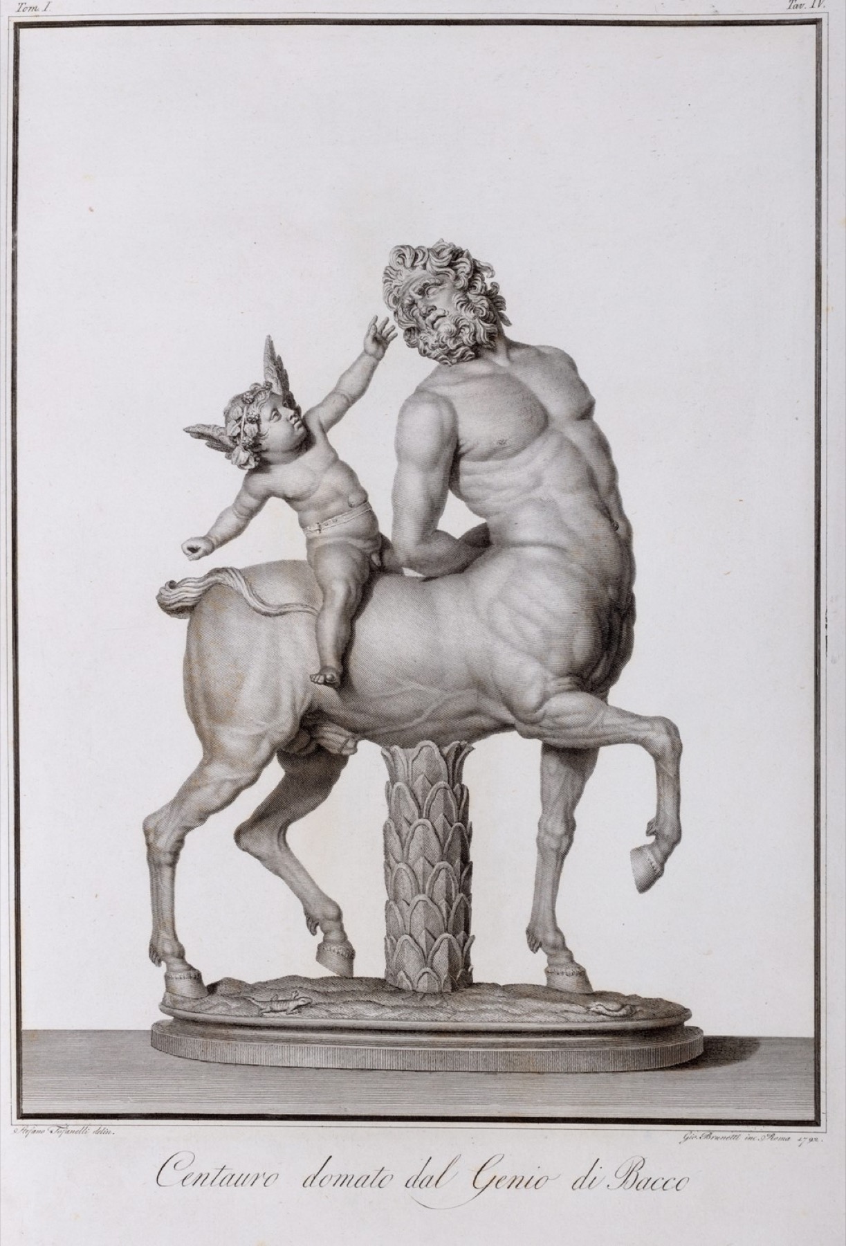 Solo il tomo primo in barbe di questa edizione originale postuma realizzata per le cure di De Rossi, Piale e Feoli, di questa splendida opera dedicata alla statuaria classica raccolta dal principe Borghese e conservata nella sua Villa sul Pincio con le belle tavole incise da Pietro Bettelini, Giovanni Brunetti, Francesco Cecchini, Giovanni Folo, Giovanni Battista Leonetti, Giovanni Ottavianie altri su disegni di Agostino Tofanelli, Pietro Fontana, Bernardino Nocchi, Luigi Cunego ecc... Borroni 2152; Brunet V, 1313: «Très bel ouvrage».
