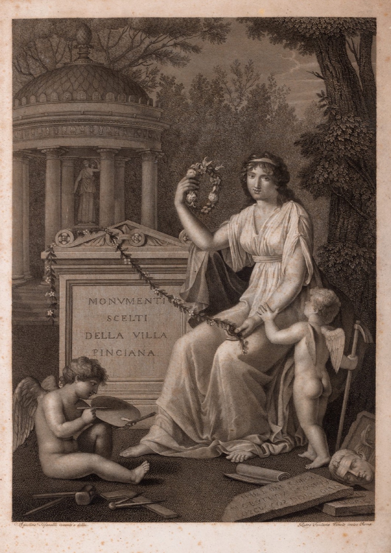 Roma, Stamperia de Romanis, 1821. In 2° imperiale. Solo tomo I. Pagine IV, [2], 110, antiporta allegorica figurata incisa in rame da Pietro Fontana su disegno di Agostino Tofanelli, seguono 48 tavole a piena pagina numerate I - XLIX, a maggior parte su disegno di Agostino e Stefano Tofanelli e Bernardino Nocchi, ed incisi da G. Ottaviani, Bettelini, Vitali, ed altri, fioriture sparse, qualche alone di umido e brunitura leggera, senza legatura.
