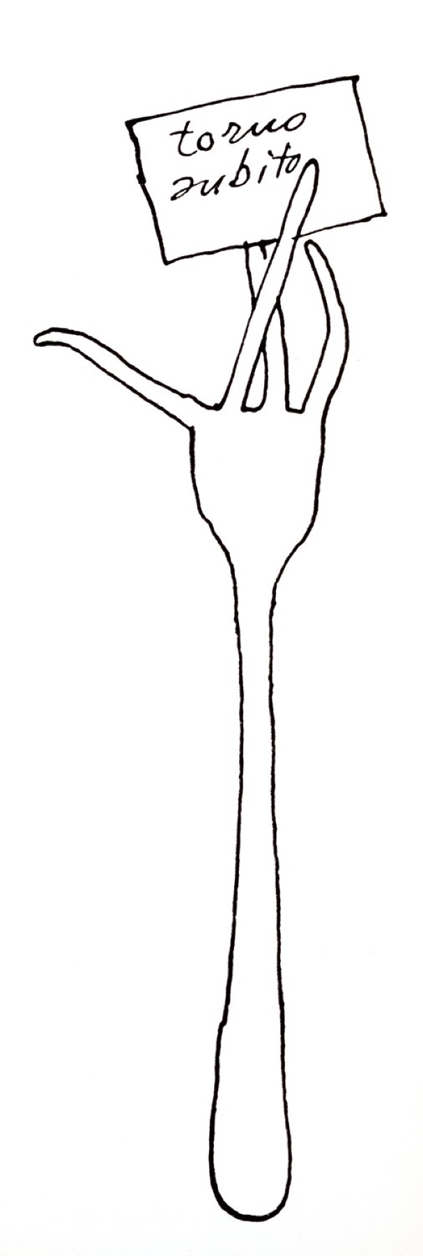 Milano, La Giostra, 1958. In 8° stretto (210x172 mm). Con 28 illustrazioni a piena pagina di Munari in bianco e nero raffiguranti forchette, accompagnati da didascalie con testi in italiano, inglese, francese e giapponese, lievi aloni al verso della 3 carta, brossura editoriale con illustrazione fotografica ai piatti, sovraccoperta in acetato trasparente.