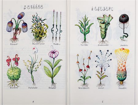 Prima edizione, stampata in edizione limitata di 4000 esemplari. Il nostro esemplare, firmato dall'artista è il numero 1268. Considerato uno tra i volumi più strani al mondo, il Codex Seraphinianus è un'opera surreale, visionaria, metafisica in cui Serafini è l'enciclopedista di un mondo inesistente dove l'esplorazione della propria fantasia diventa una sorta di percorso autoanalitico. Conferendo uguale importanza all’immagine e alla parola, accompagna una scrittura asemica con immagini fantastiche, lasciando al lettore il piacere di interpretare e riempire di significati ciò che osserva. La lingua, seppure immaginaria, ci appare sorprendentemente familiare tanto da farci credere che stiamo effettivamente leggendo; le immagini, pur appartenendo per la loro stranezza a un mondo altro, mantengono elementi comuni con il nostro. Subito dopo la pubblicazione, l’opera catturò l’attenzione di autorevoli intellettuali. A proposito del mondo fantastico di Serafini così scriveva Italo Calvino: "dove l’anatomico e il meccanico si scambiano le loro morfologie... dove il vegetale si sposa al merceologico, lo zoologico al minerale...così il cementizio e il geologico, l’araldico e il tecnologico, il selvaggio e il metropolitano, lo scritto e il vivente" .