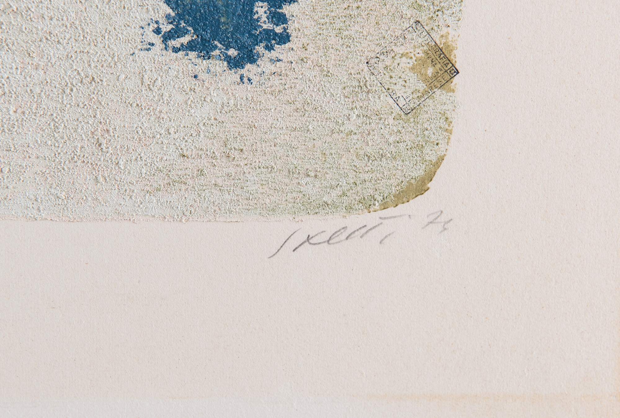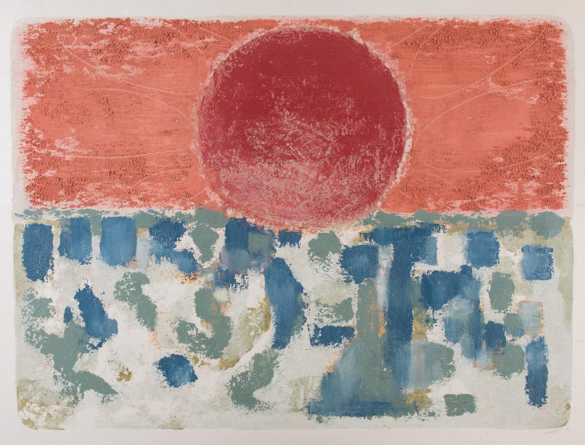 BRUNO SAETTI (Bologna 1902 - 1984) "Sole rosso", 1974. Litografia a tecnica di affresco. Cm 89,5x116. Opera firmata e datata in basso a destra Saetti 74.