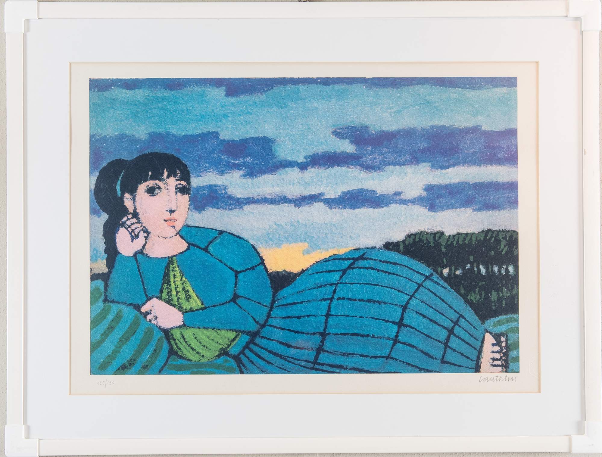 DOMENICO CANTATORE (Ruvo di Puglia 1906 - 1998 Parigi) "Odalisca". Acquaforte su carta. Cm 48,5x67,5. Opera firmata in basso a destra. Reca numeri di tiratura in basso a sinistra 125/150. Al retro reca etichetta della Galleria d'Arte Contemporanea La Loggia, Bologna.