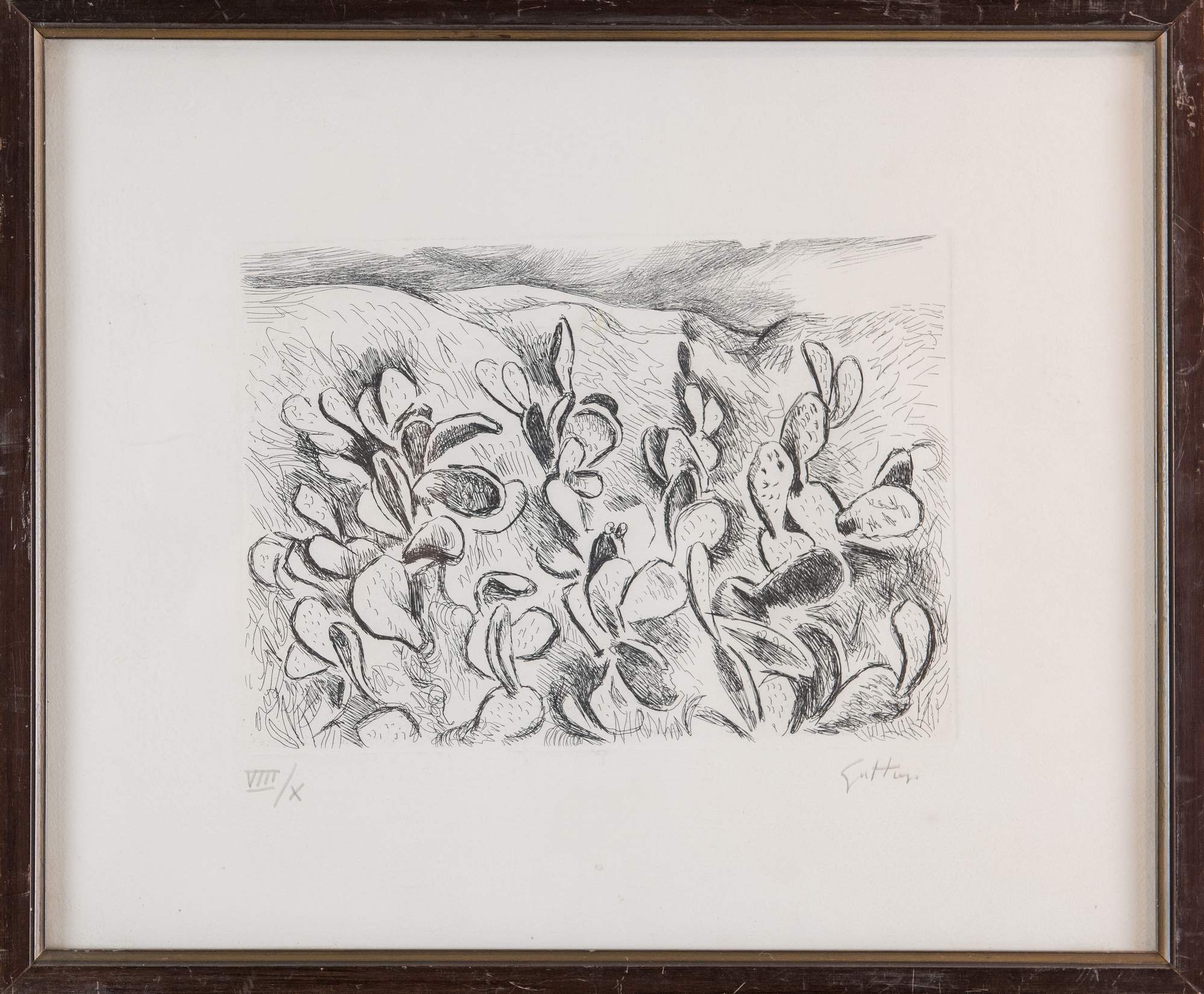 RENATO GUTTUSO (Bagheria 1911 - Roma 1987) "Fichi d'India". Incisione su carta. Cm 34,5x42,5. Opera firmata in basso a destra Guttuso. Reca numeri di tiratura in lettere romane VIII/X in basso a sinistra.