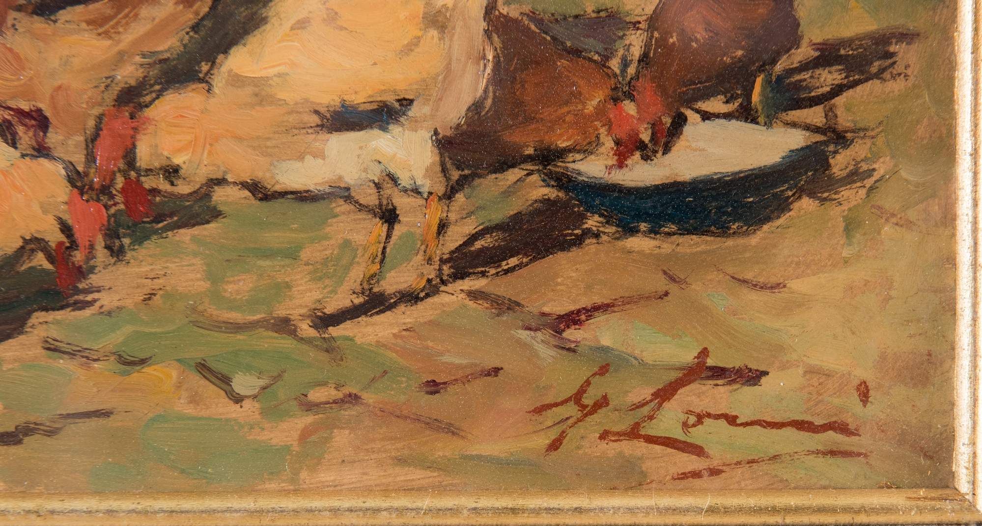Lotto 73 | GIOVANNI LOMI (Ardenza 1889 - Livorno 1969) "Galli". Olio su cartone telato....