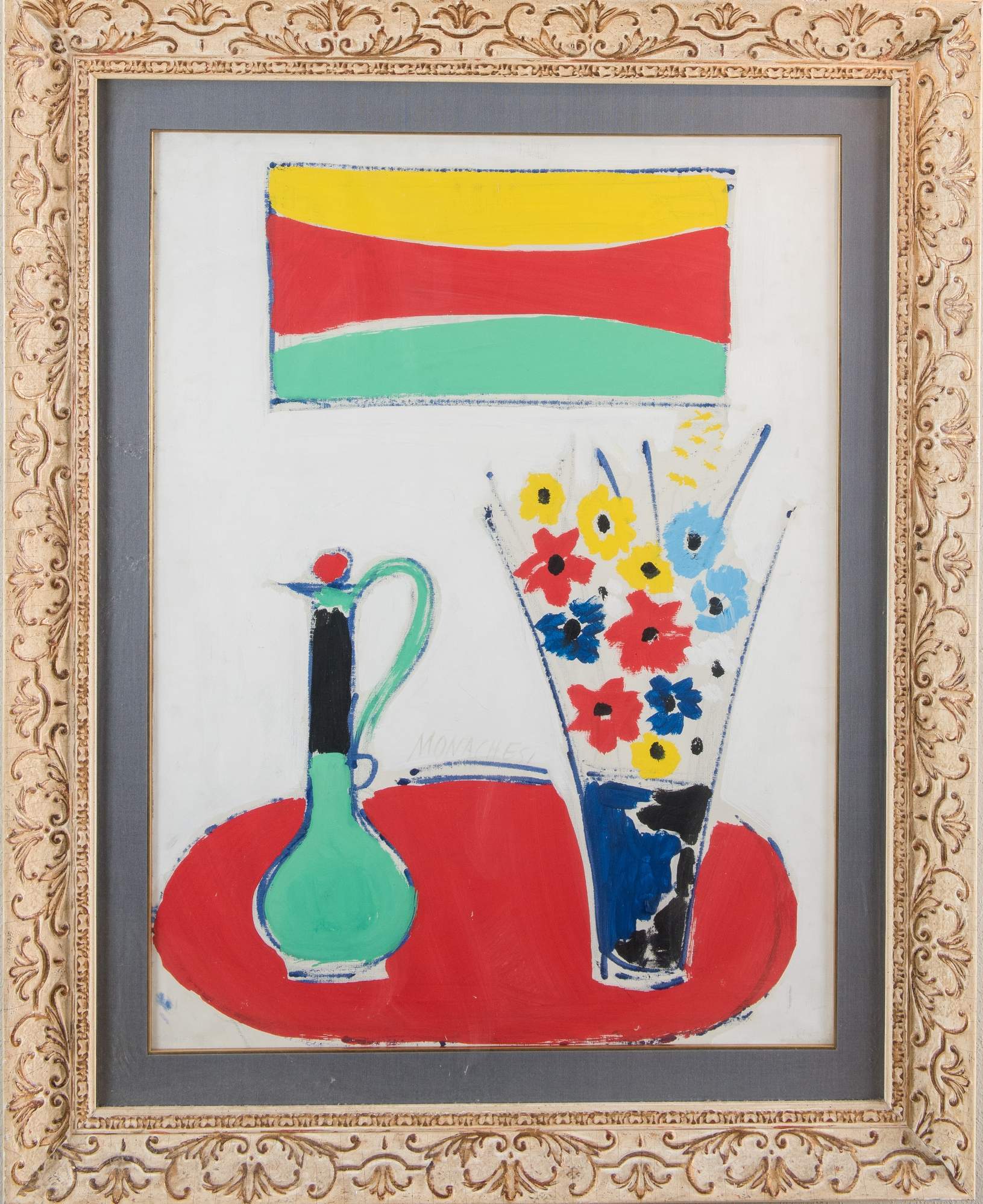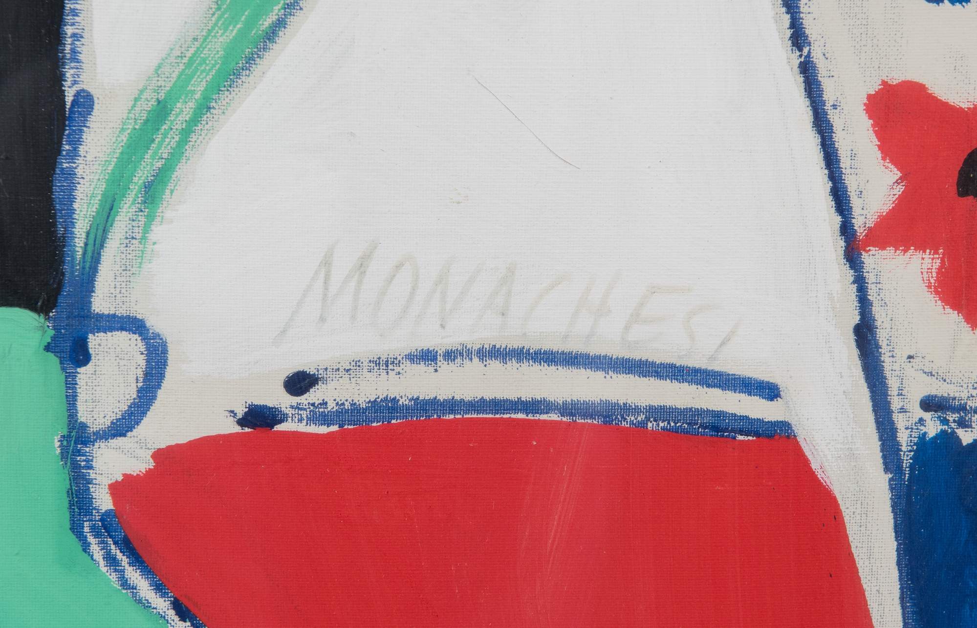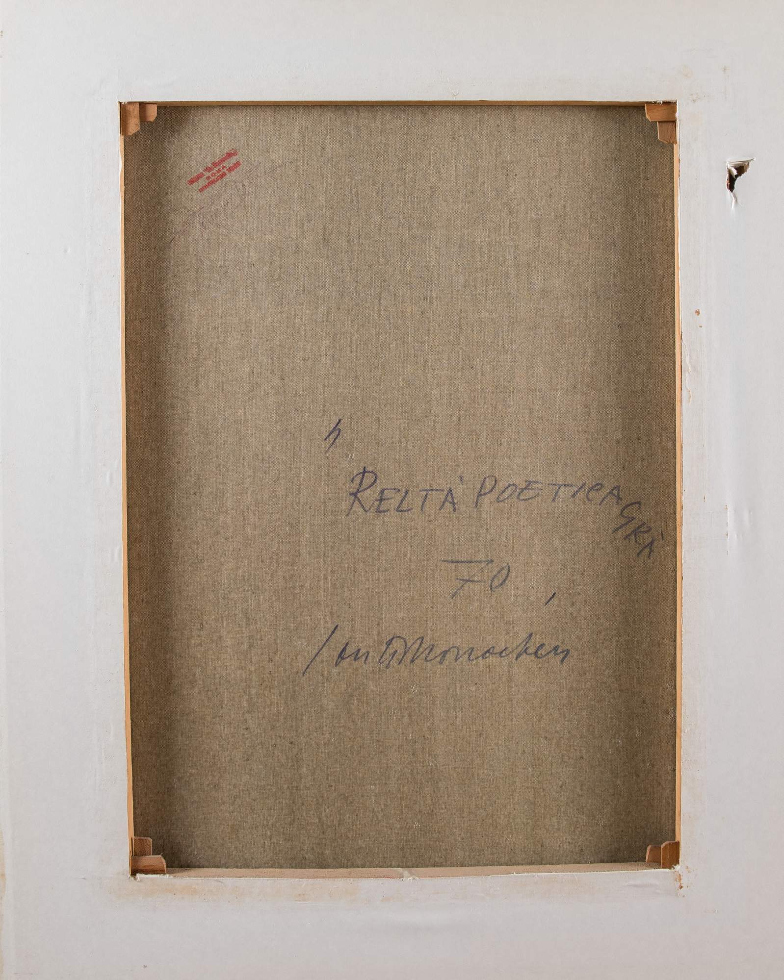 SANTE MONACHESI (Macerata 1910 - Roma 1991) “Realtà poetica”, 1970. Olio su tela. Cm 78x58,5. Opera firmata al centro Monachesi. Al retro opera intitolata, datata e firmata Realtà poetica, '70, Sante Monachesi. Al retro reca timbro Galleria La Barcaccia, Roma.