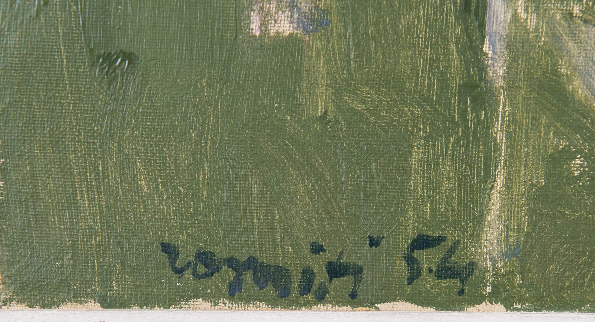 SERGIO ROMITI (Bologna 1928 -2000) "Composizione verde", 1954. Olio su tela. Cm 50x65. Opera firmata e datata in basso a sinistra Romiti 54. Pubblicazioni: Ultimo naturalismo, omaggio a Francesco Arcangeli pag. 122 - Sergio Romiti, Catalogo generale ragionato dei dipinti, Volume I.