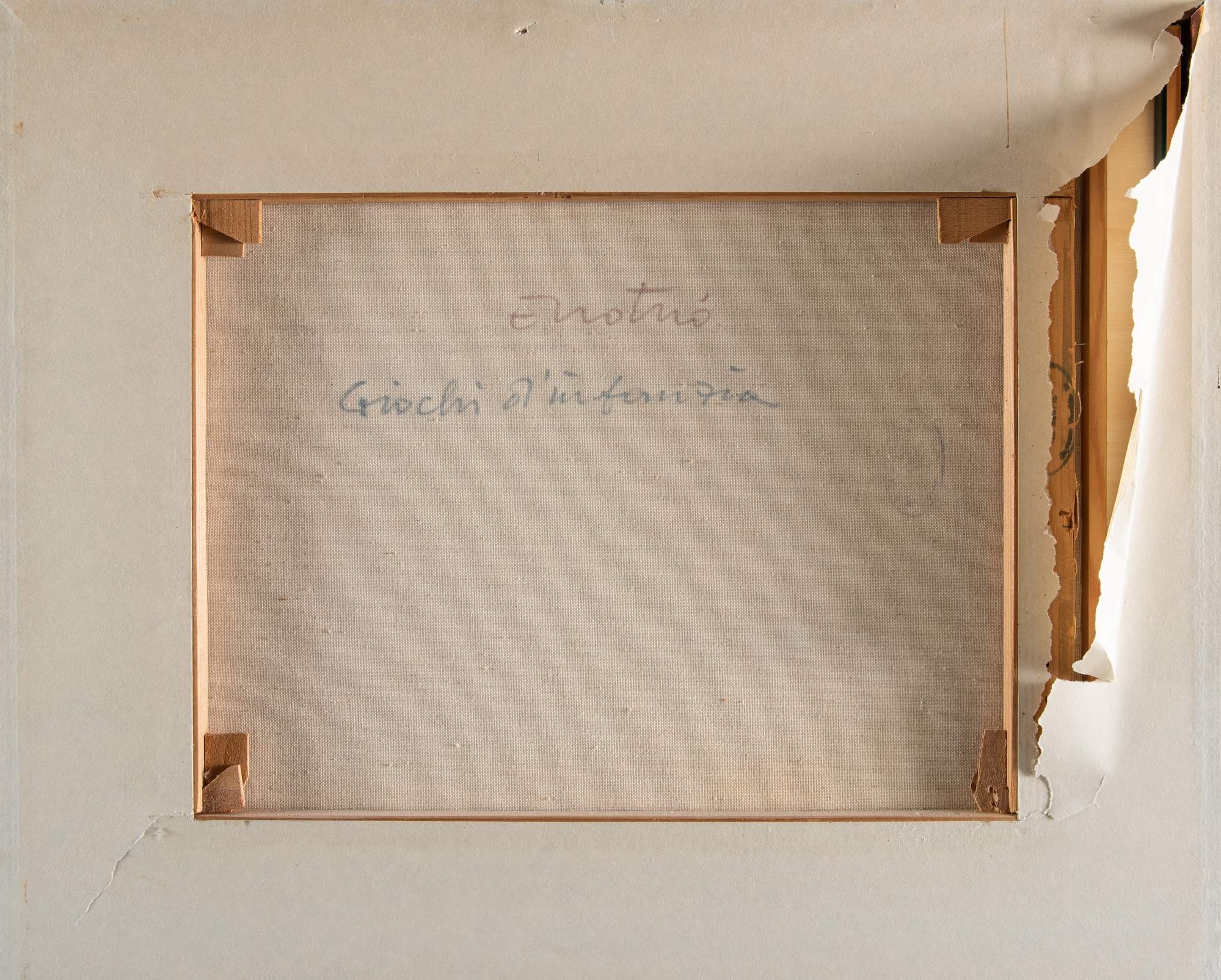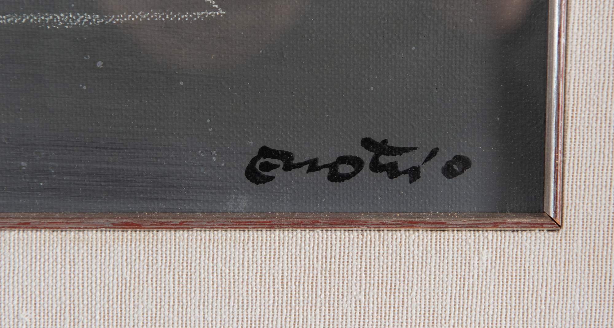 ENOTRIO PUGLIESE (Buenos Aires 1920 - Pizzo 1989) "Giochi d'infanzia". Olio su tela. Cm 40x50. Opera firmata in basso a destra Enotrio. Al retro opera firmata ed intitolata Enotrio Giochi d'infanzia. Al retro reca timbro non leggibile.