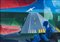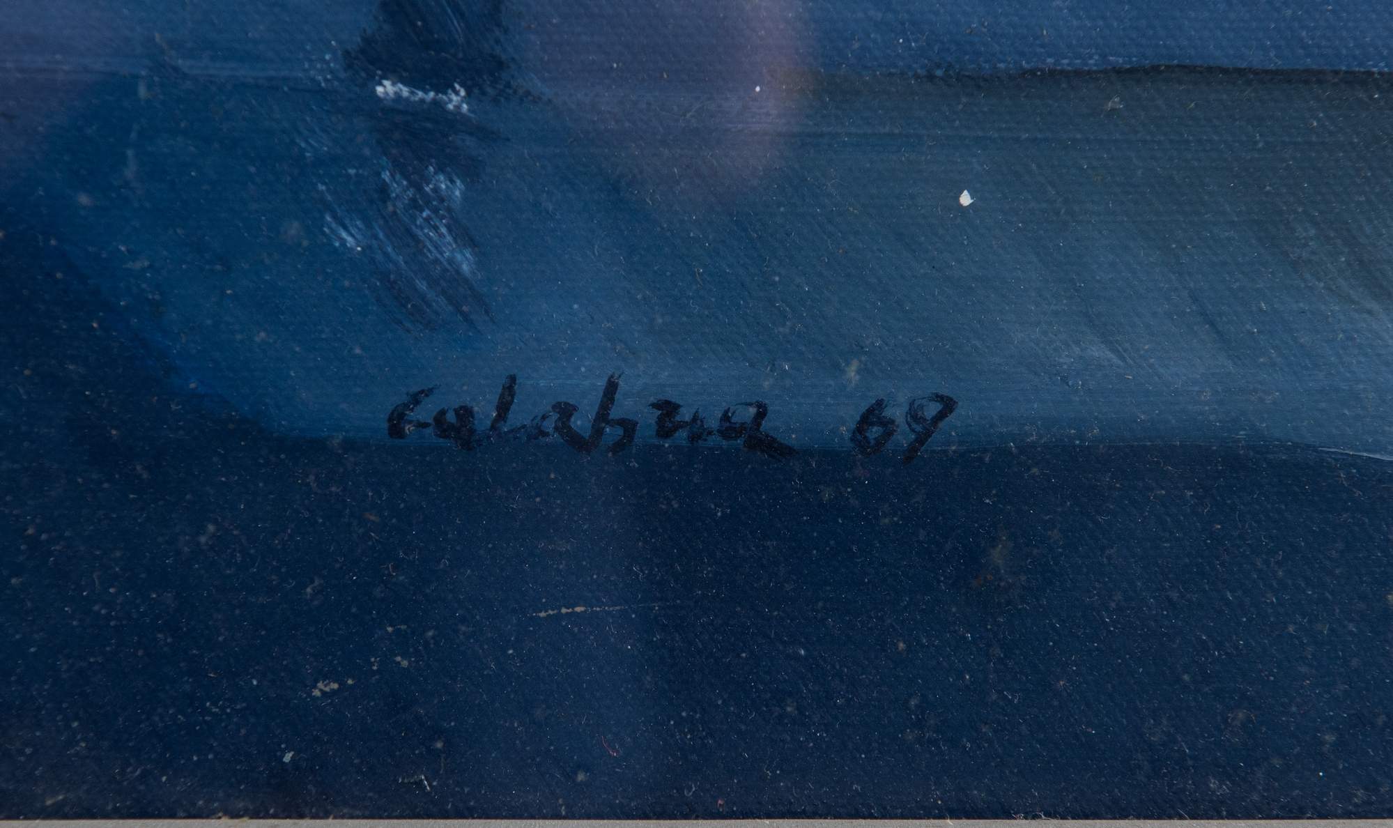 ENNIO CALABRIA (Tripoli 1937) "Aeroporto", 1969. Olio su tela. Cm 50,5x70. Opera firmata e datata in basso a sinistra Calabria 69. Al retro reca timbri di una Galleria d'arte livornese e una Galleria d'Arte riminese. Opera accompagnata da autentica su fotografia a firma del maestro.