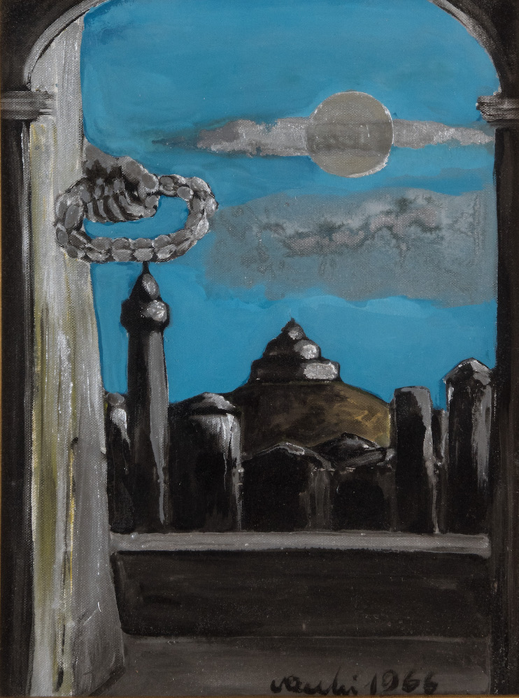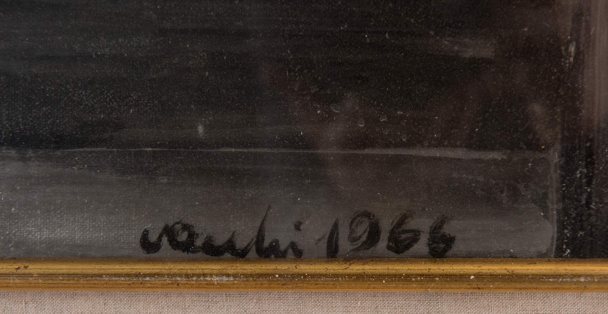SERGIO VACCHI (Castenaso 1925 - Siena 2016) "San Luca", 1966. Tecnica mista su tela. Cm 41x31,5. Opera firmata e datata in basso a destra Vacchi 1966.
