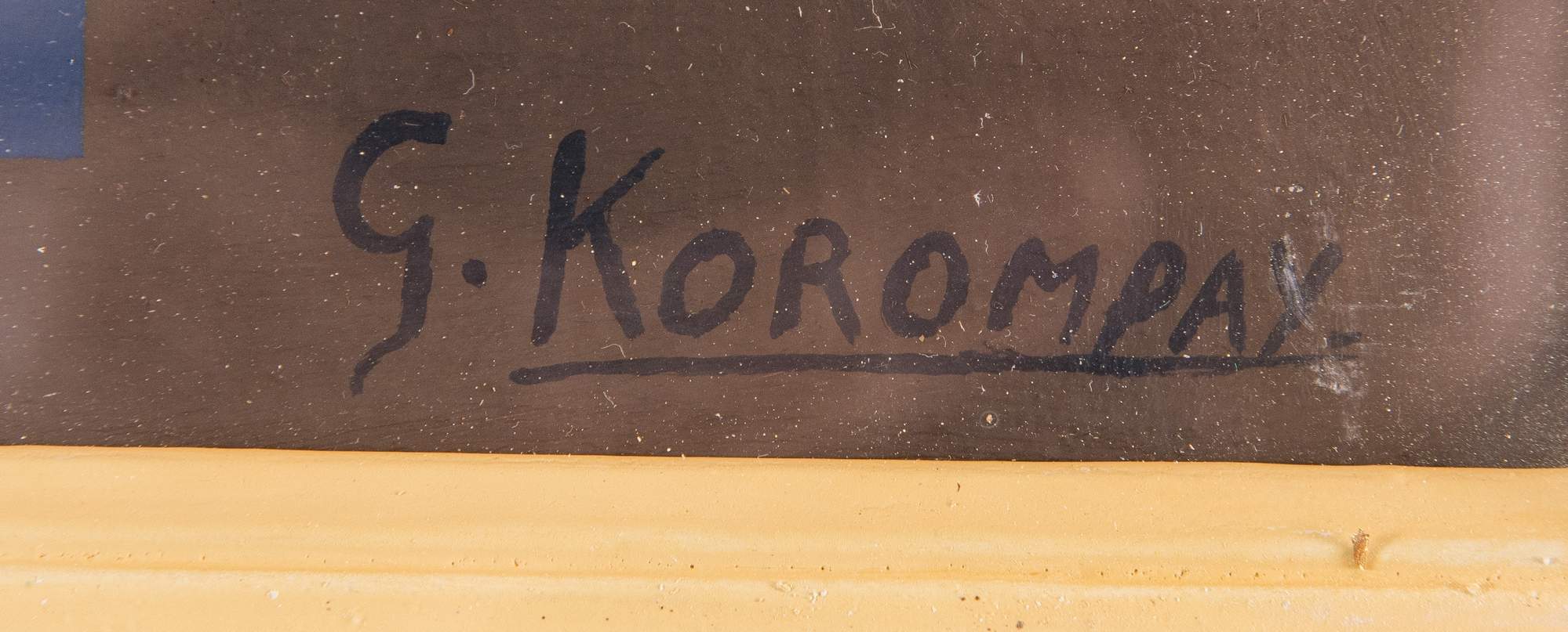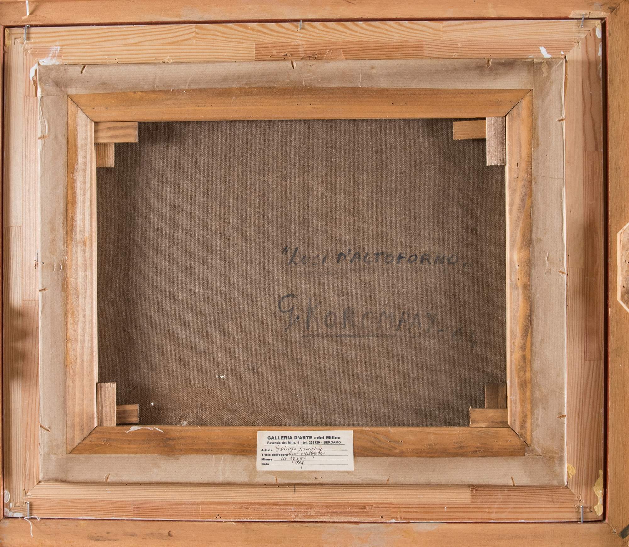 GIOVANNI KOROMPAY (Venezia 1904 - Rovereto 1988) "Luci d'altoforno", 1964. Olio su tela. Cm 40x50. Opera firmata in basso a destra G. Korompay. Al retro opera intitolata firmata a e datata Luci d'altoforno G. Korompay 64. Al retro reca etichetta Galleria d'Arte "Dei Mille", Bergamo. Opera accompagnata da autentica su fotografia dell'artista.