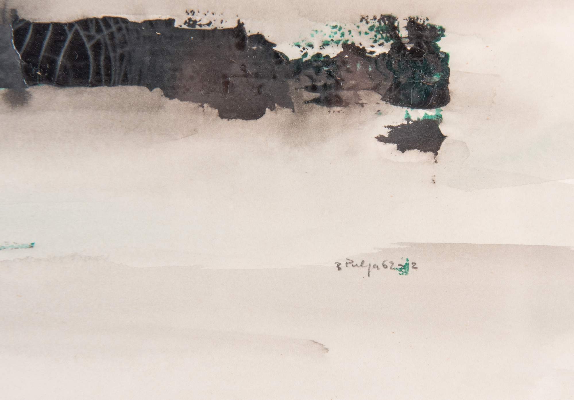 BRUNO PULGA (Bologna 1922 - 1992) “Composizione”, 1962. Olio e tecnica mista su carta. Cm 56x76. Opera firmata e datata in basso a destra B. Pulga ‘62.