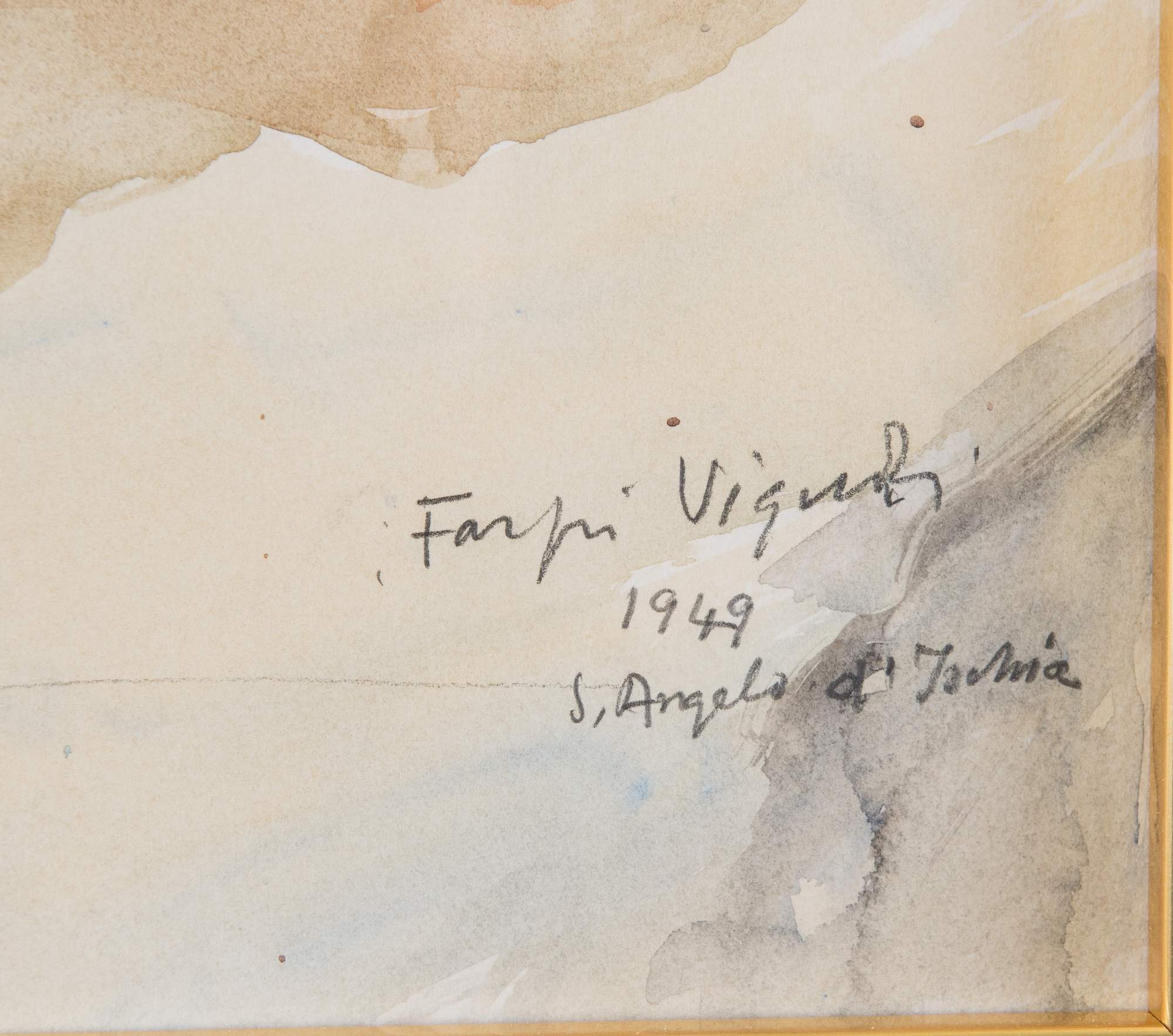 FARPI VIGNOLI (Bologna 1907 – 1997) "Sant'Angelo d'Ischia", 1949. Tecnica mista su carta. Cm 40x33. Opera firmata, datata e intitolata in basso a destra Farpi Vignoli, 1949, Sant'Angelo d'Ischia.