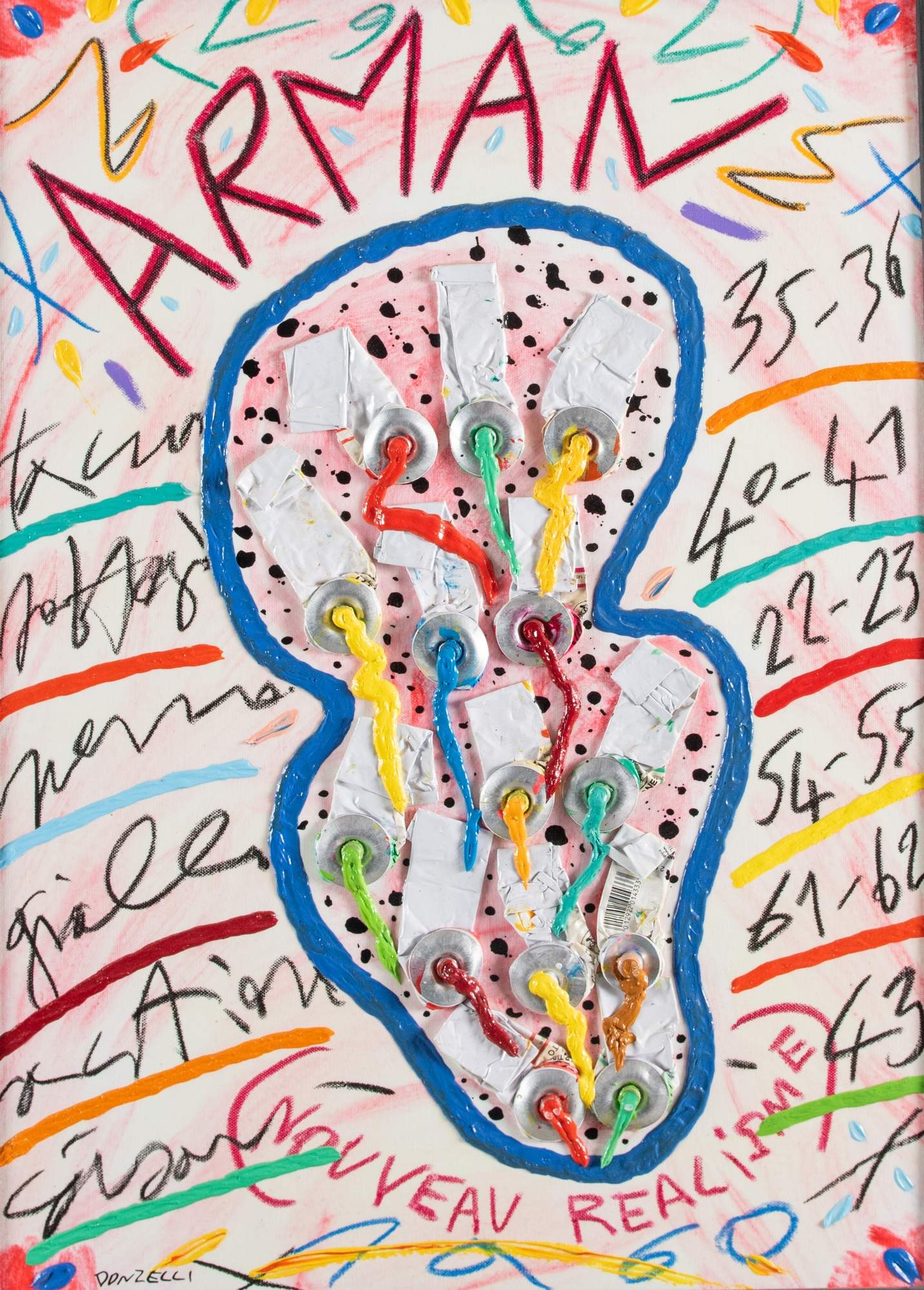 BRUNO DONZELLI (Napoli 1941) "Ormare, Arman". Olio, tecnica mista e collage...