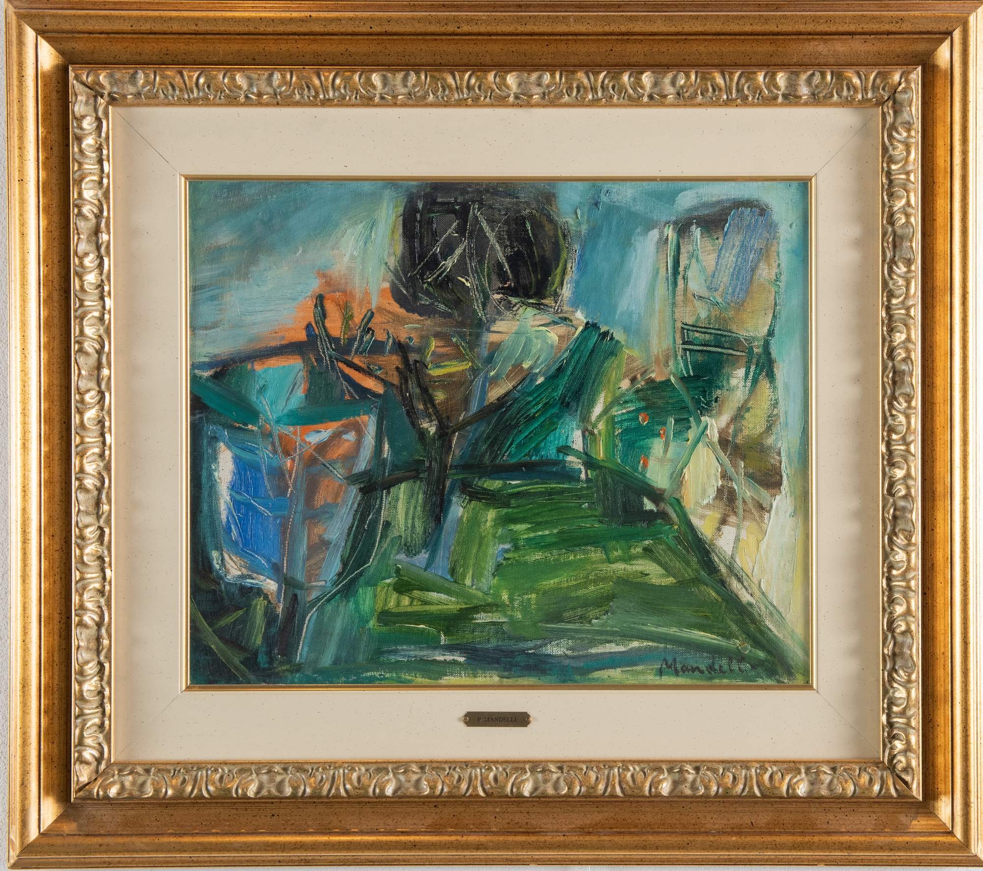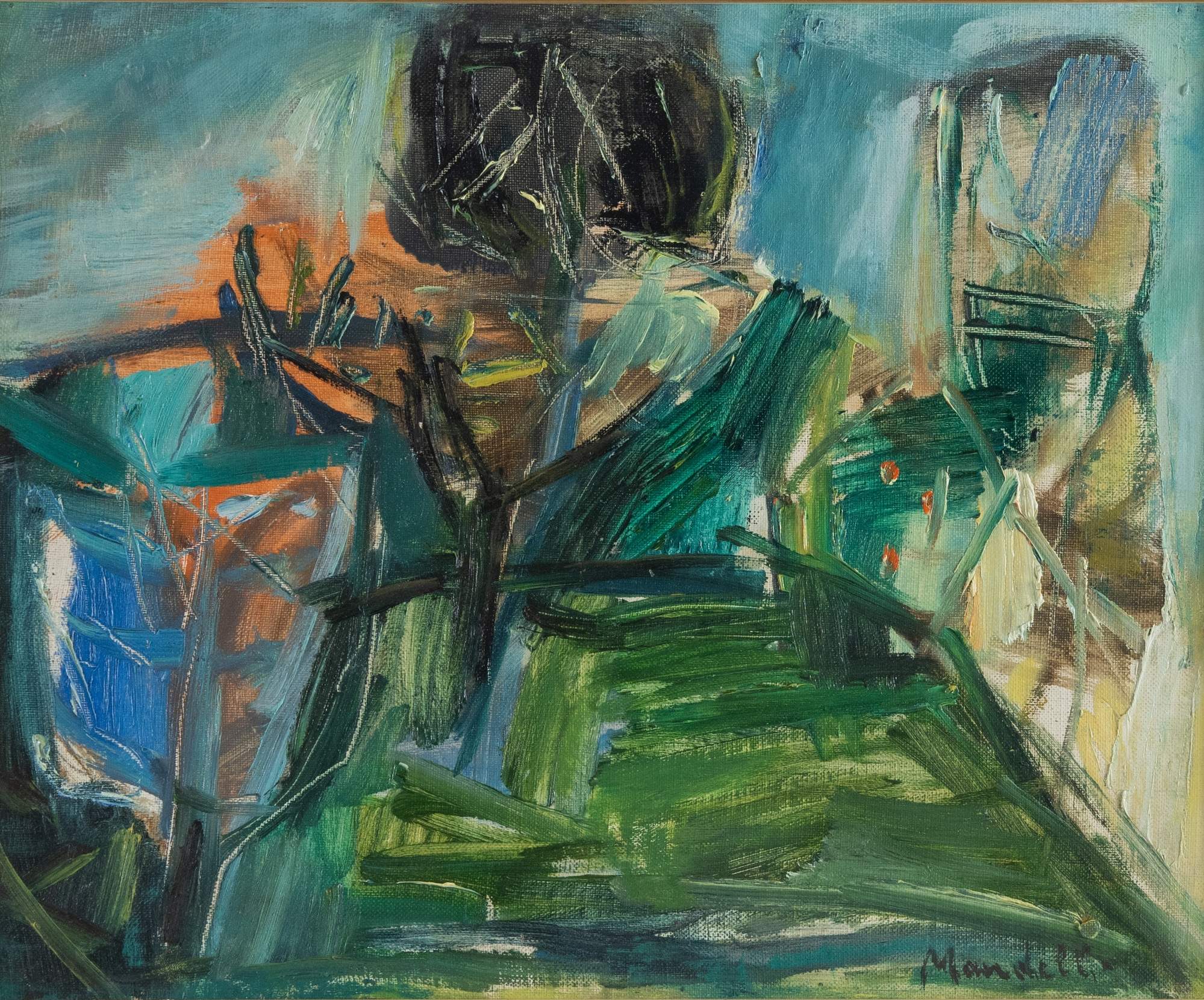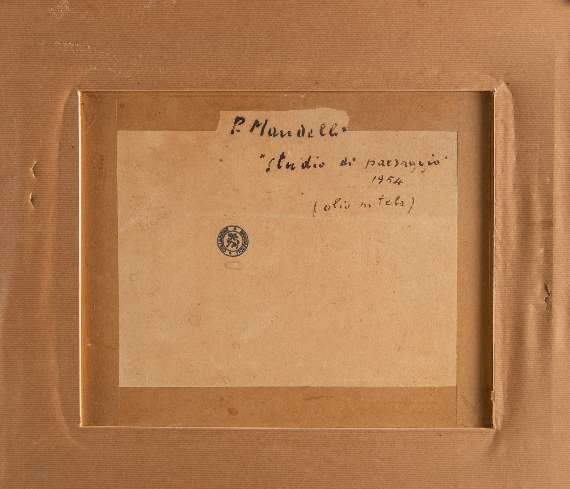 POMPILIO MANDELLI (Villarotta 1912 - Bologna 2006) "Studio di paesaggio", 1954. Olio su tela. Cm 33,5x41. Opera firmata in basso a destra Mandelli. Al retro opera firmata, intitolata e datata P. Mandelli "Studio di Paesaggio" 1954. Al retro reca timbro Collezione Brintazzoli, Bologna.