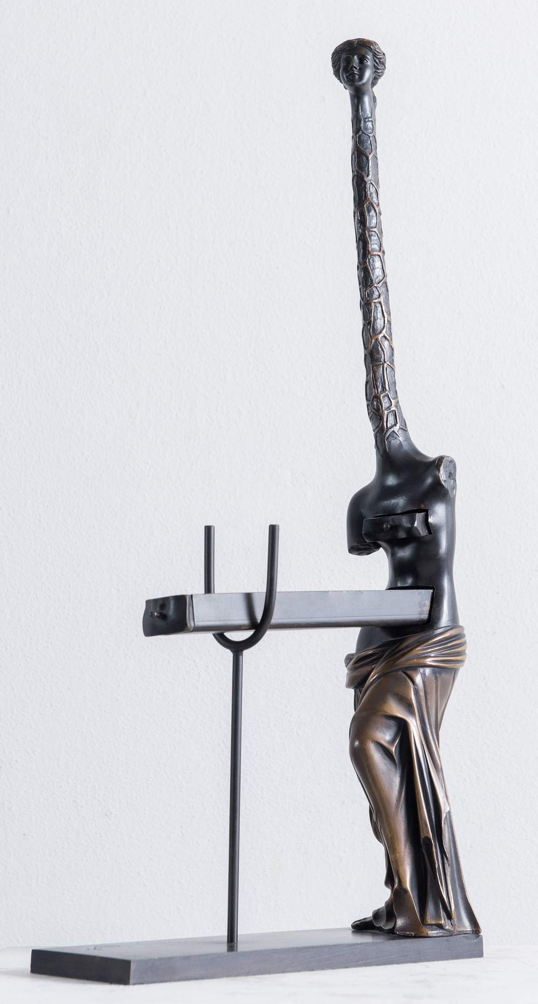SALVATOR DALI' (Figueres 1904 - 1989) "Venere e giraffa", 1973. Scultura di bronzo. Cm 56x27x9,5. Opera firmata alla base Dalì.