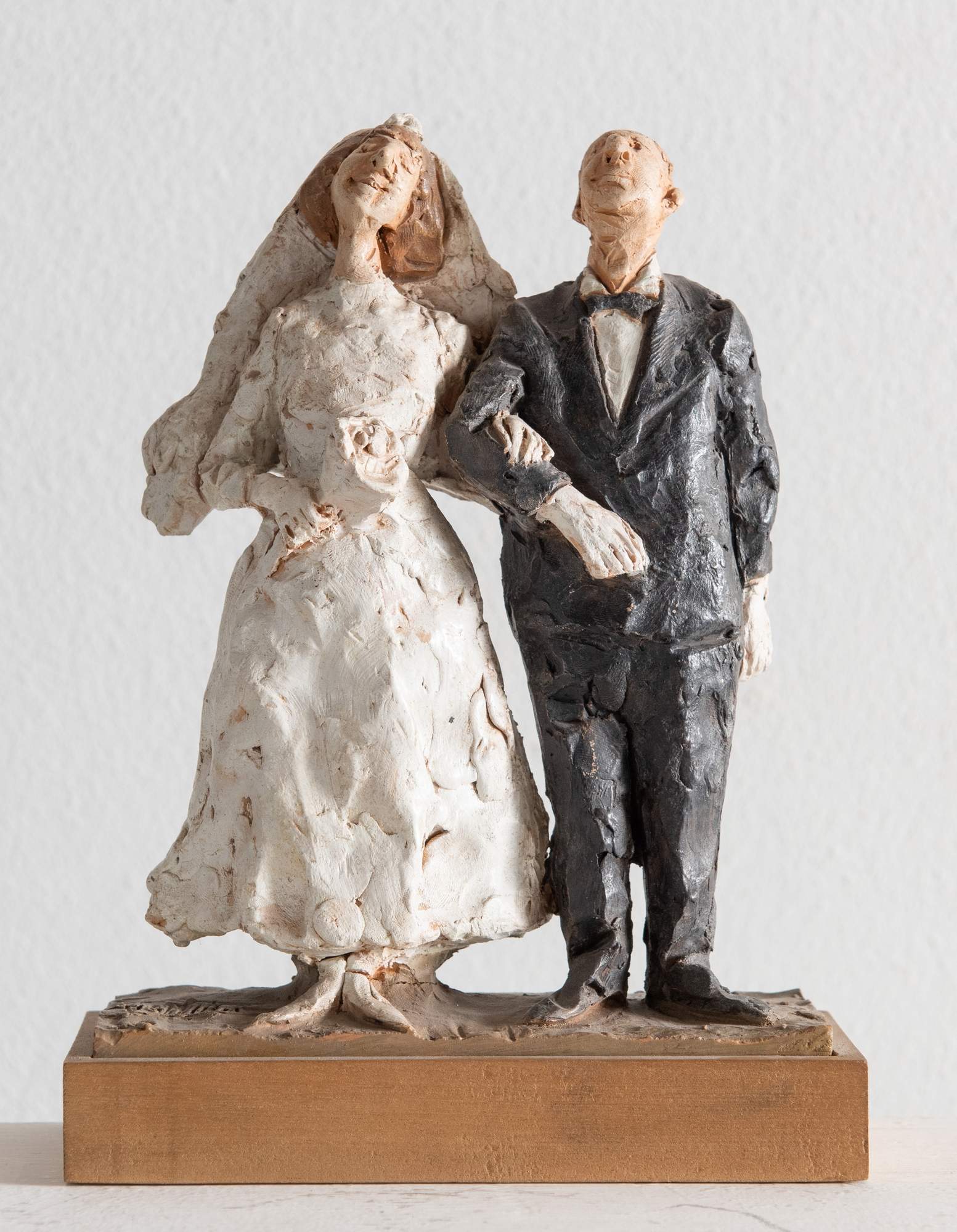 CLETO TOMBA (Castel San Pietro Terme 1898 - Bologna 1987) “Sposi". Scultura in terracotta policroma. Cm 22,5x15x6,5. Alla base reca firma Tomba e timbro Cleto Tomba.